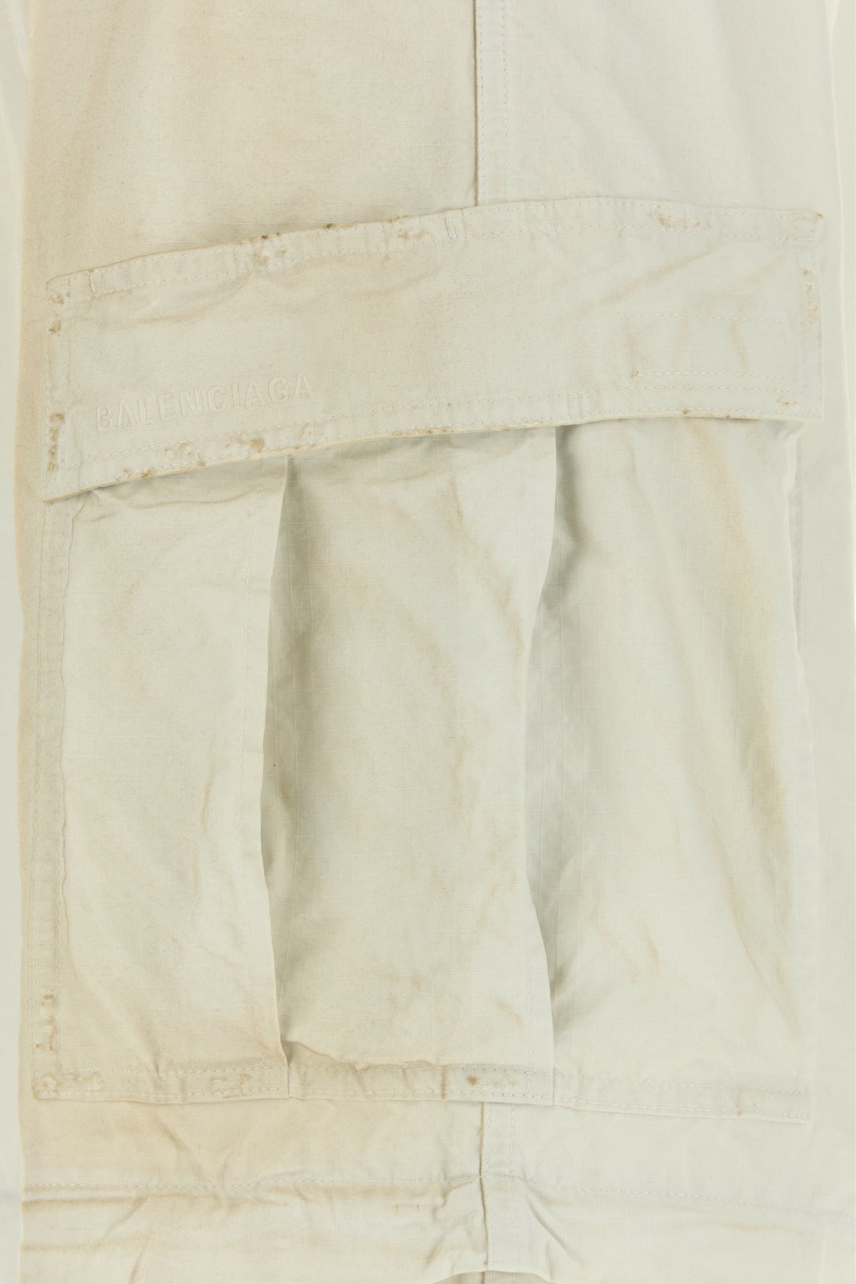 Pantalone cargo realizzato in puro cotone caratterizzato da ricamo a quadri su tutta la superficie e logo ricamato tonale sulla parte frontale.