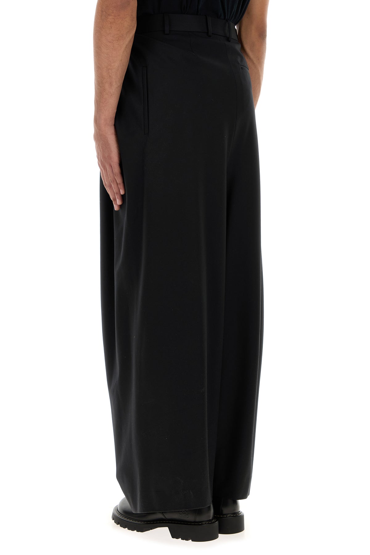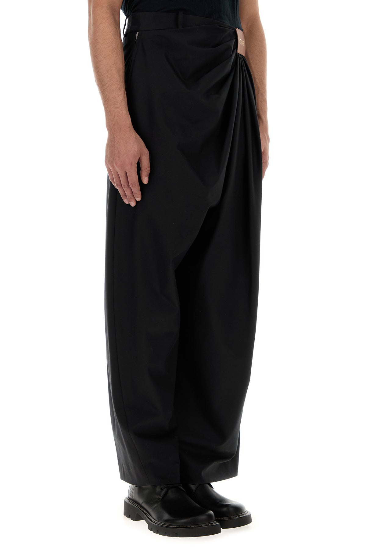 Pantalone dalla gamba ampia realizzato in cotone e seta caratterizzato da drappeggio asimmetrico sulla parte frontale arricchito da etichetta logata in pelle in vita.
