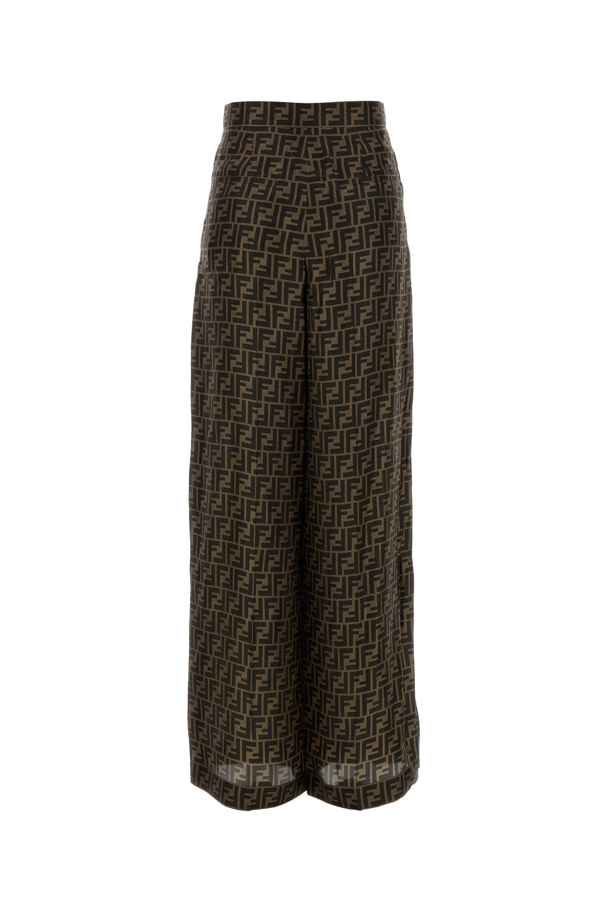 Pantalone dalla gamba ampia realizzato in twill di pura seta caratterizzato da stampa a motivo FF su tutta la superficie.