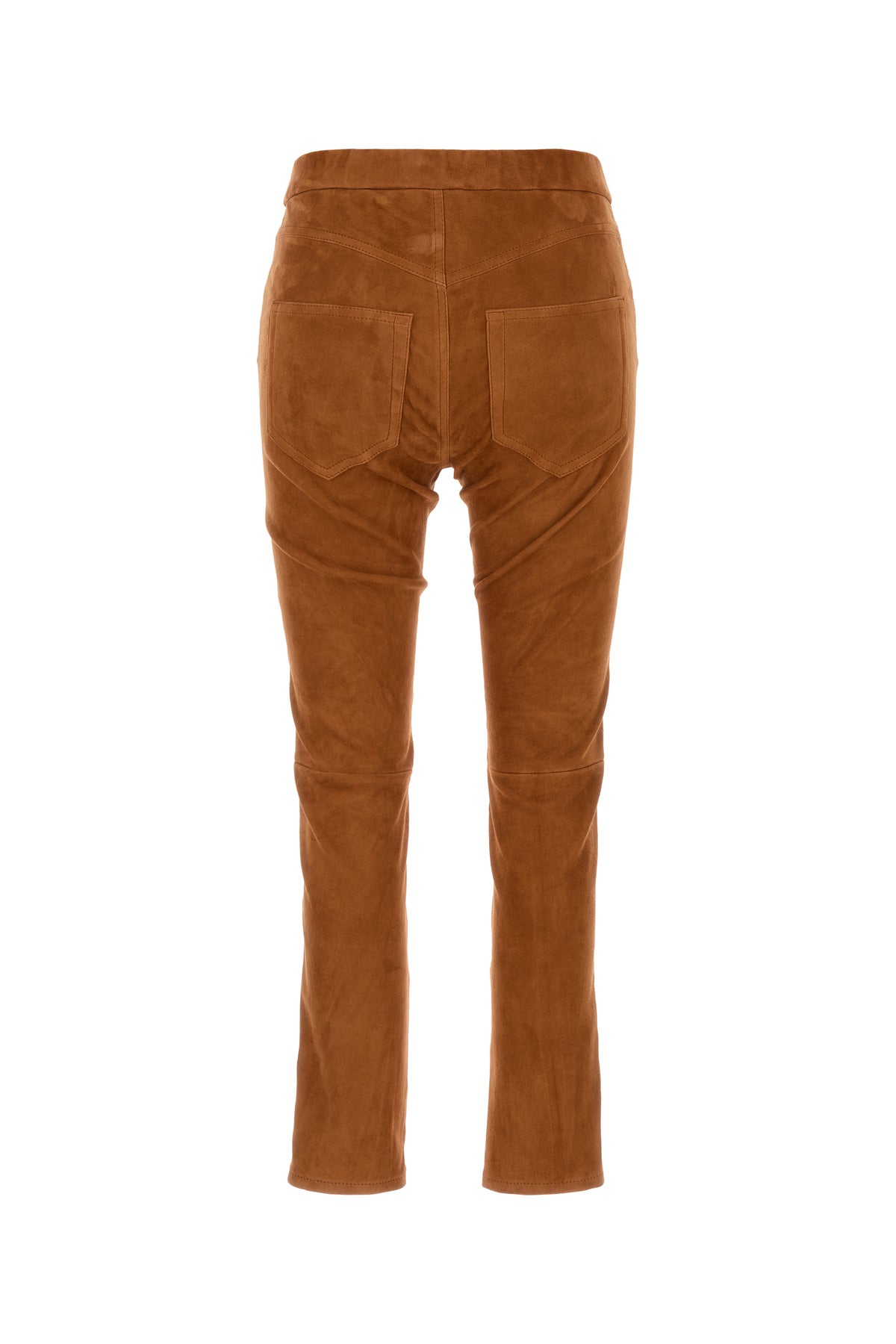 Pantalone skinny realizzato in pelle scamosciata di agnello.