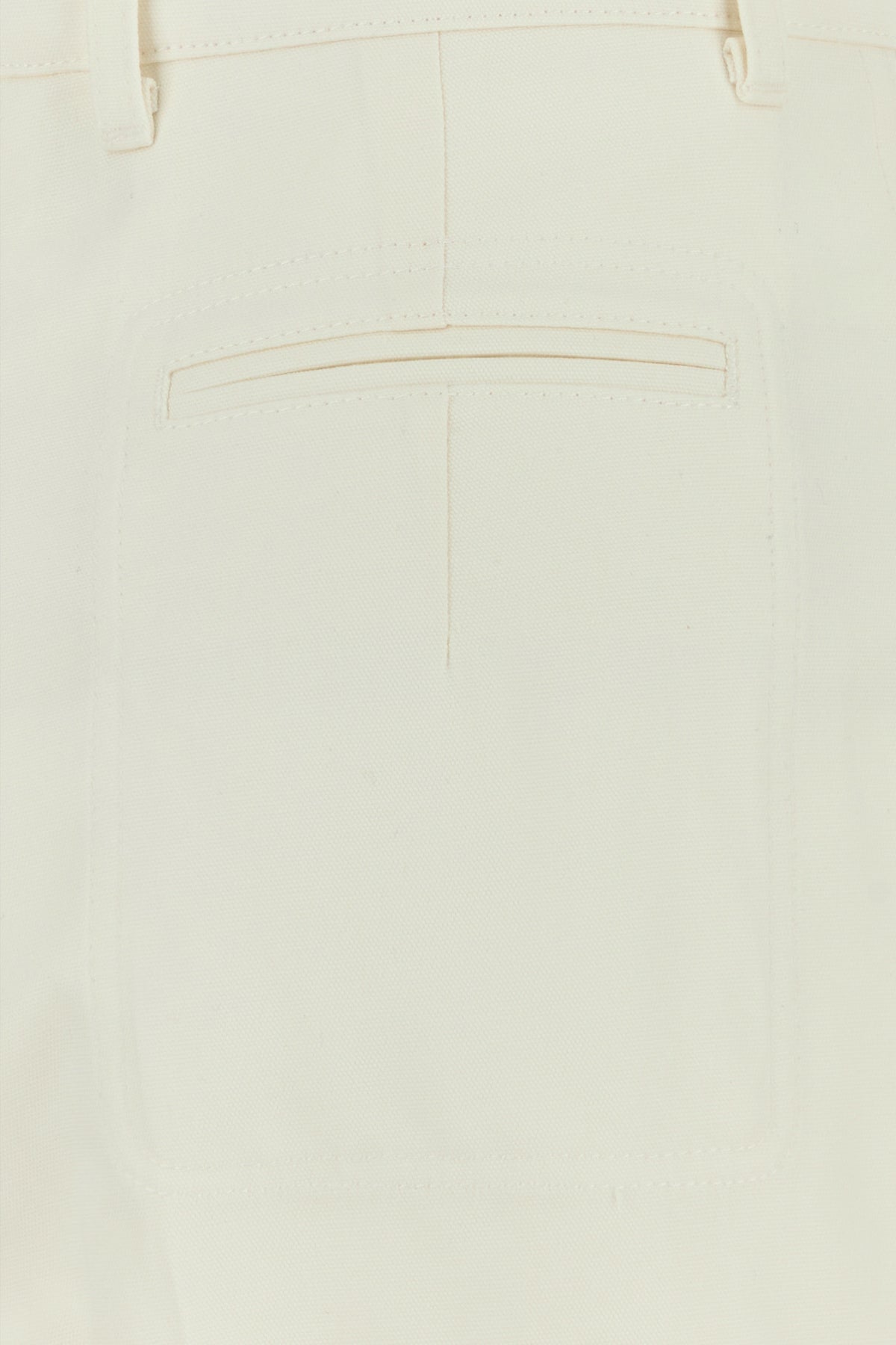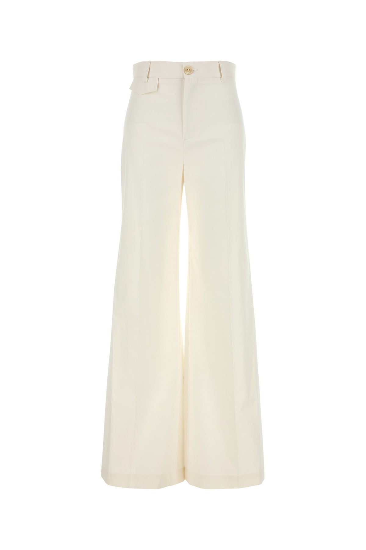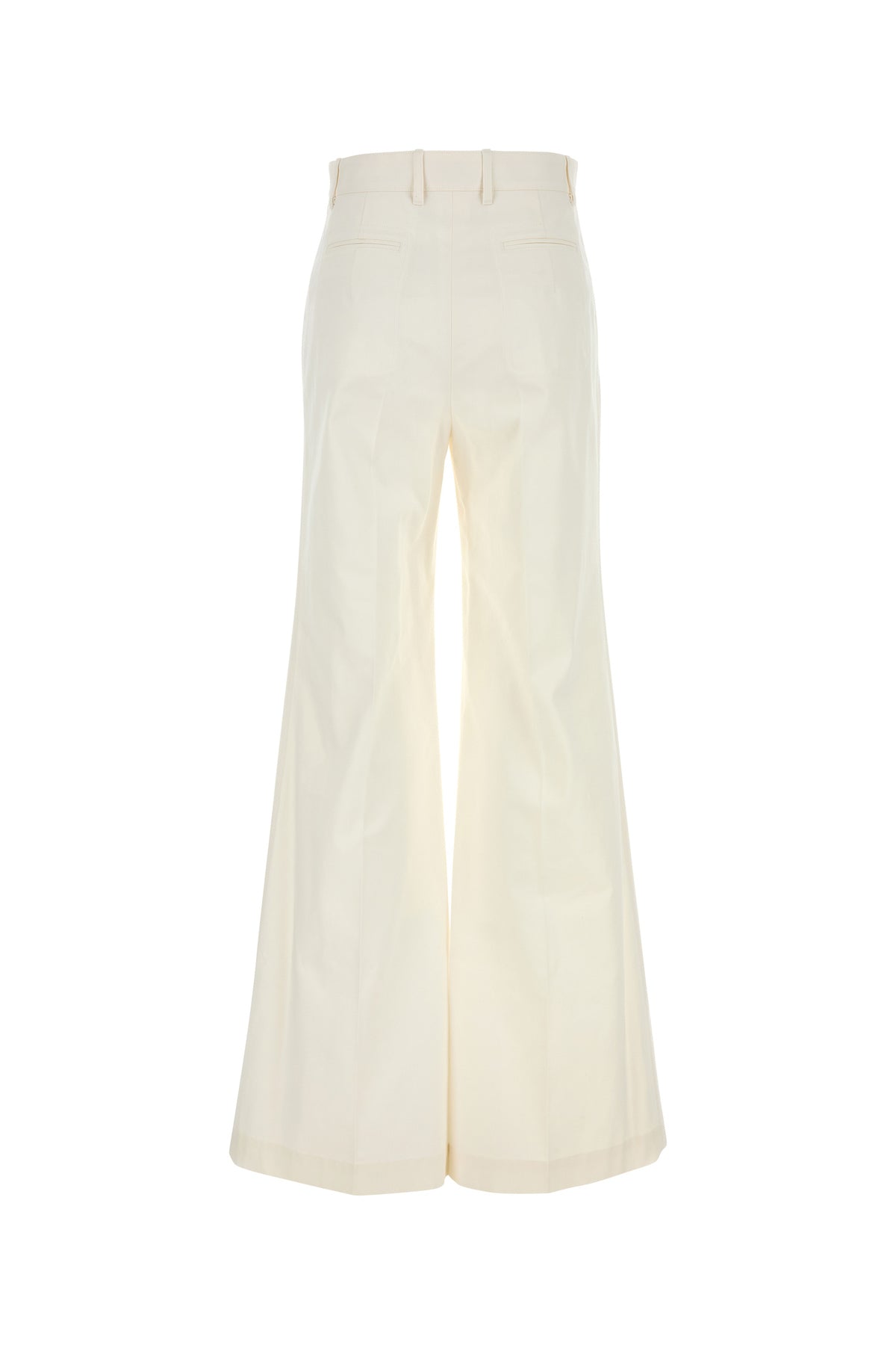Pantalone a zampa realizzato in puro cotone caratterizzato da pieghe centrali stirate.