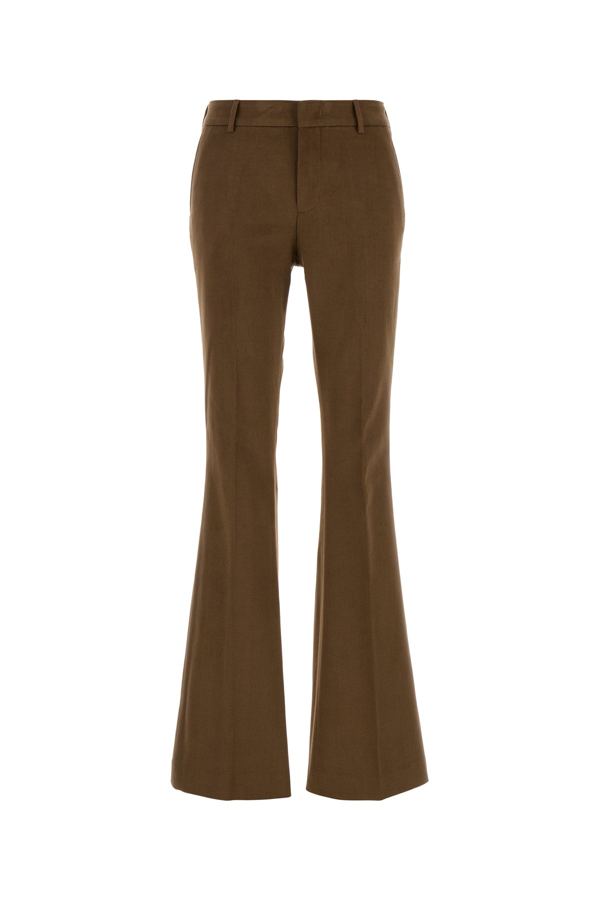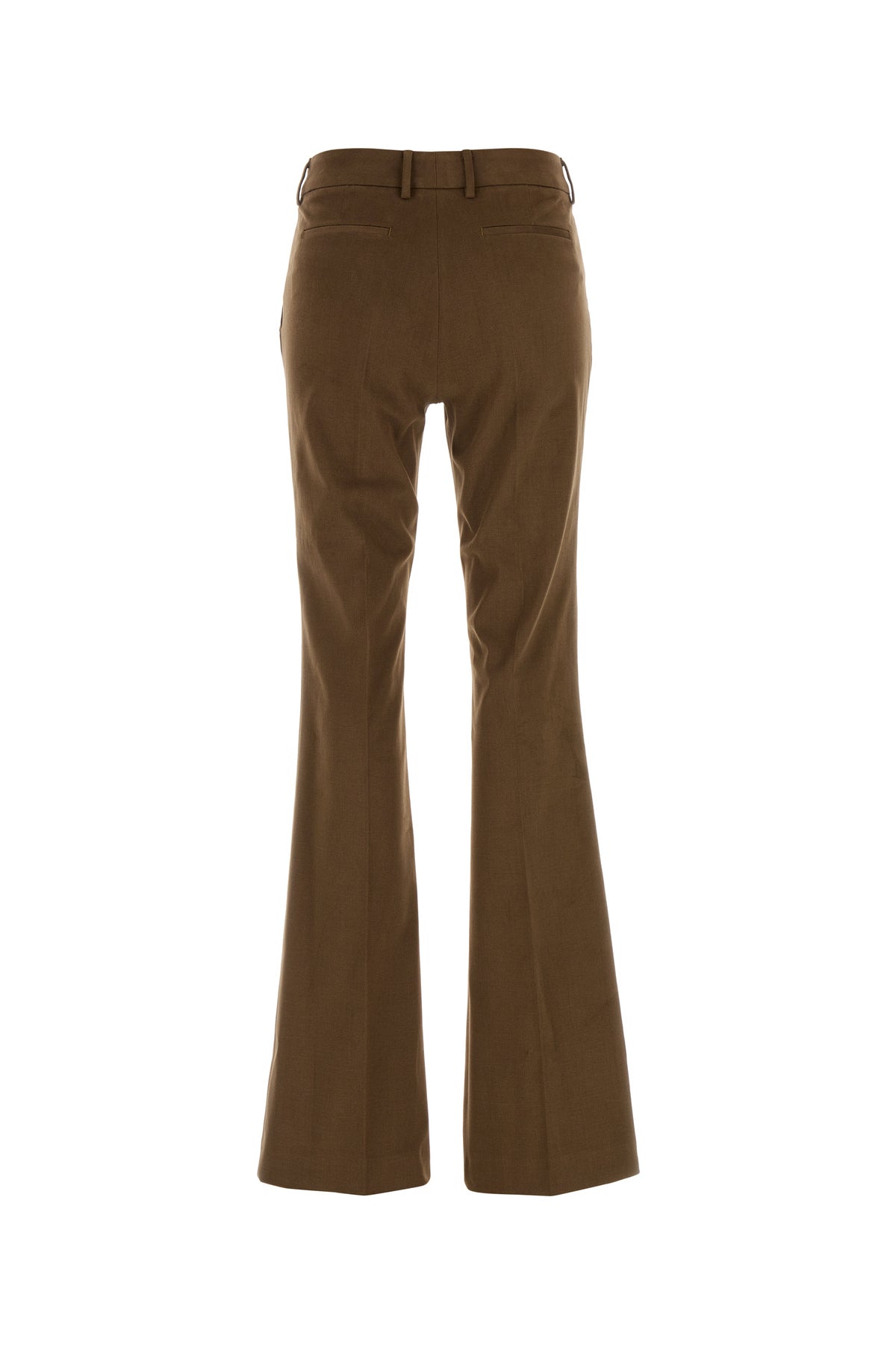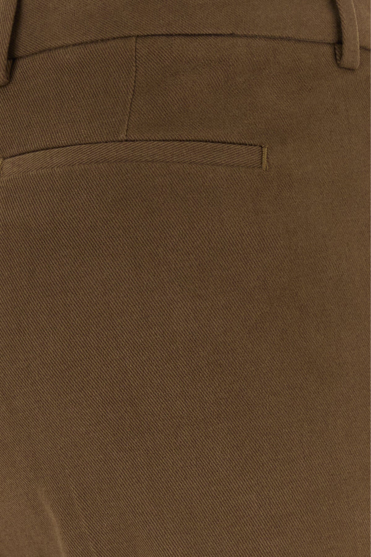 Pantalone a zampa realizzato in cotone stretch caratterizzato da pieghe centrali stirate.