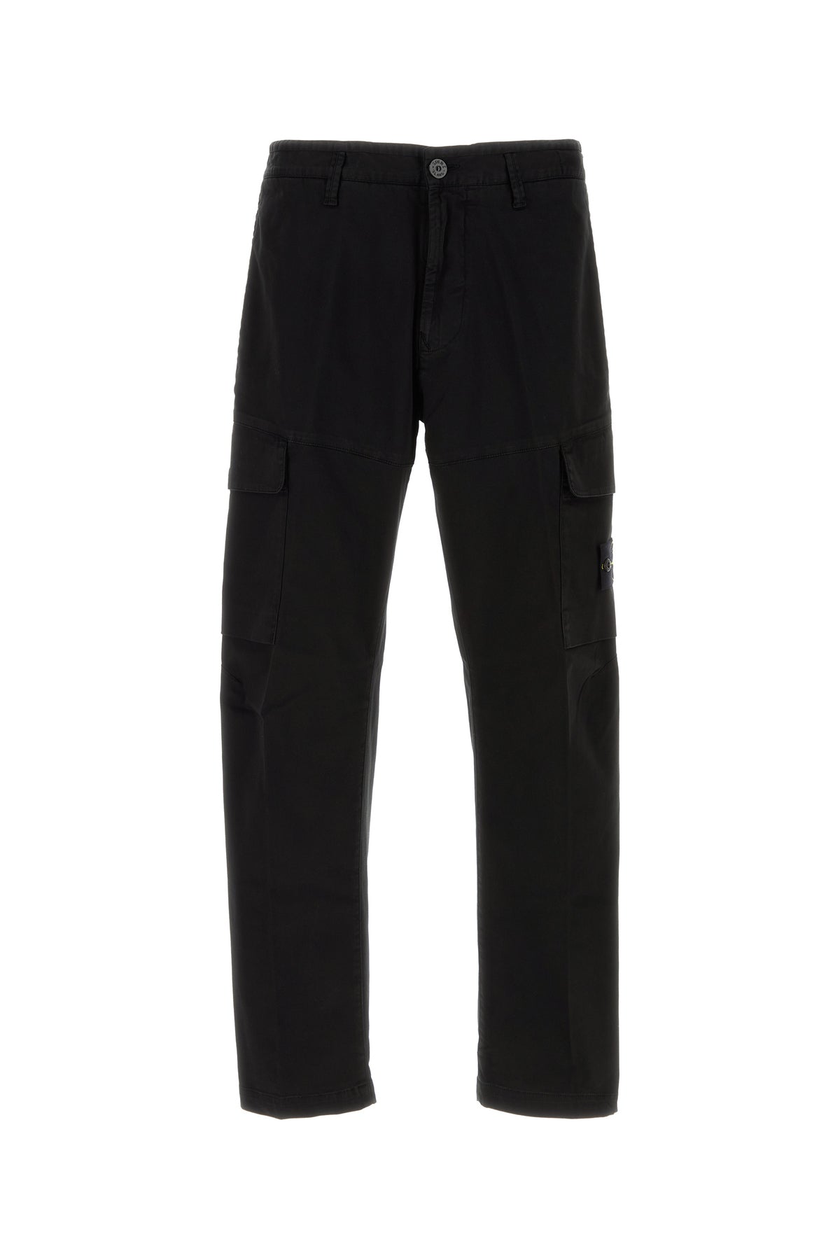 Pantalone realizzato in cotone stretch arricchito da applicazione logata amovibile sul lato.