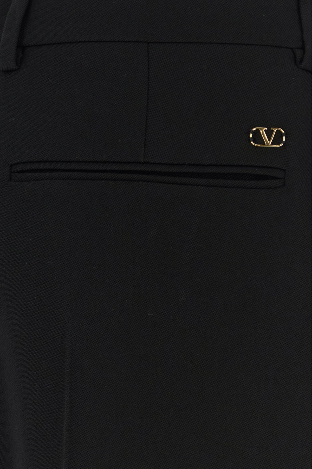 Pantalone realizzato in pura lana vergine arricchito da dettaglio VLogo in metallo sul retro.