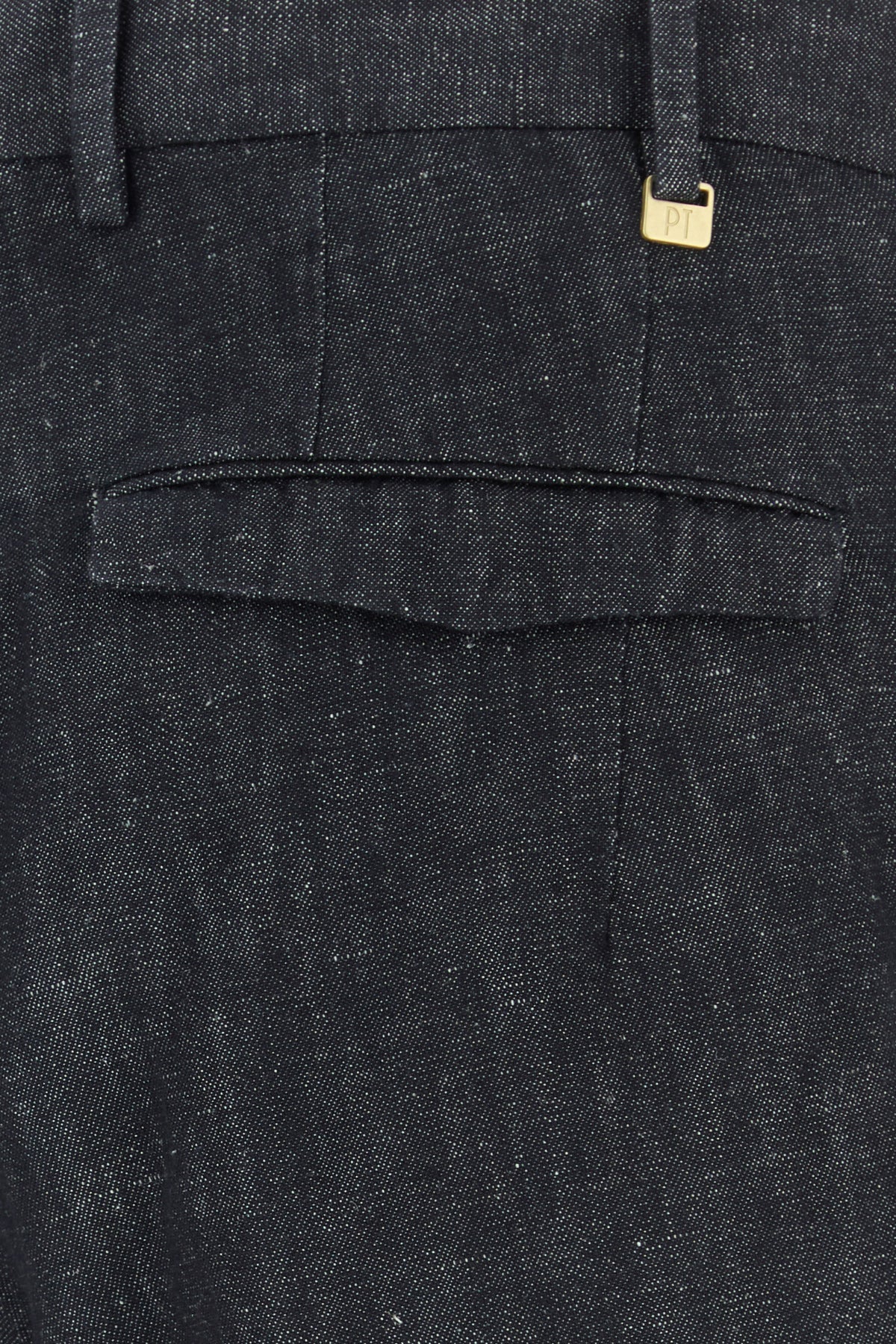 Pantalone realizzato in cotone e lino caratterizzato da pieghe centrali stirate.