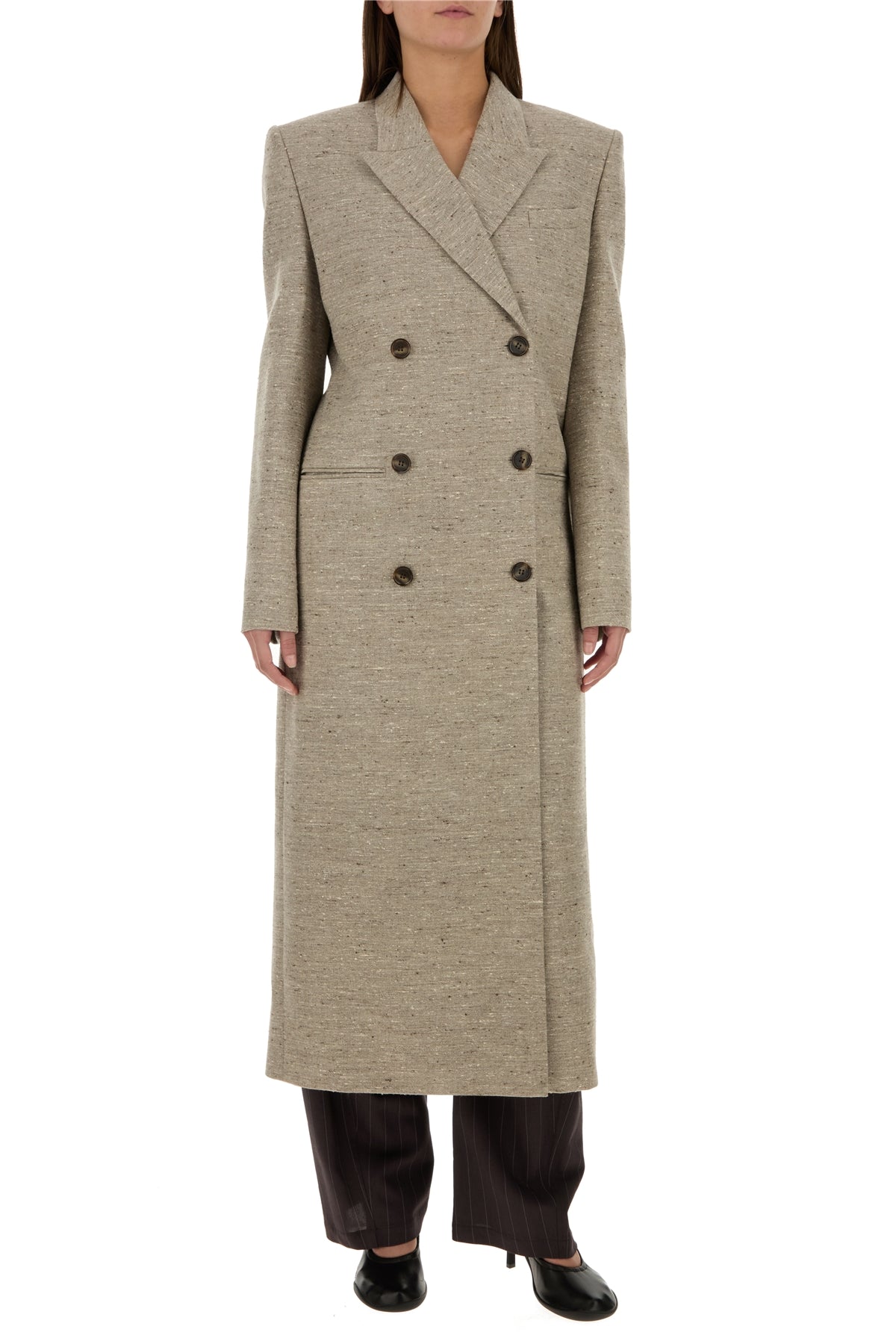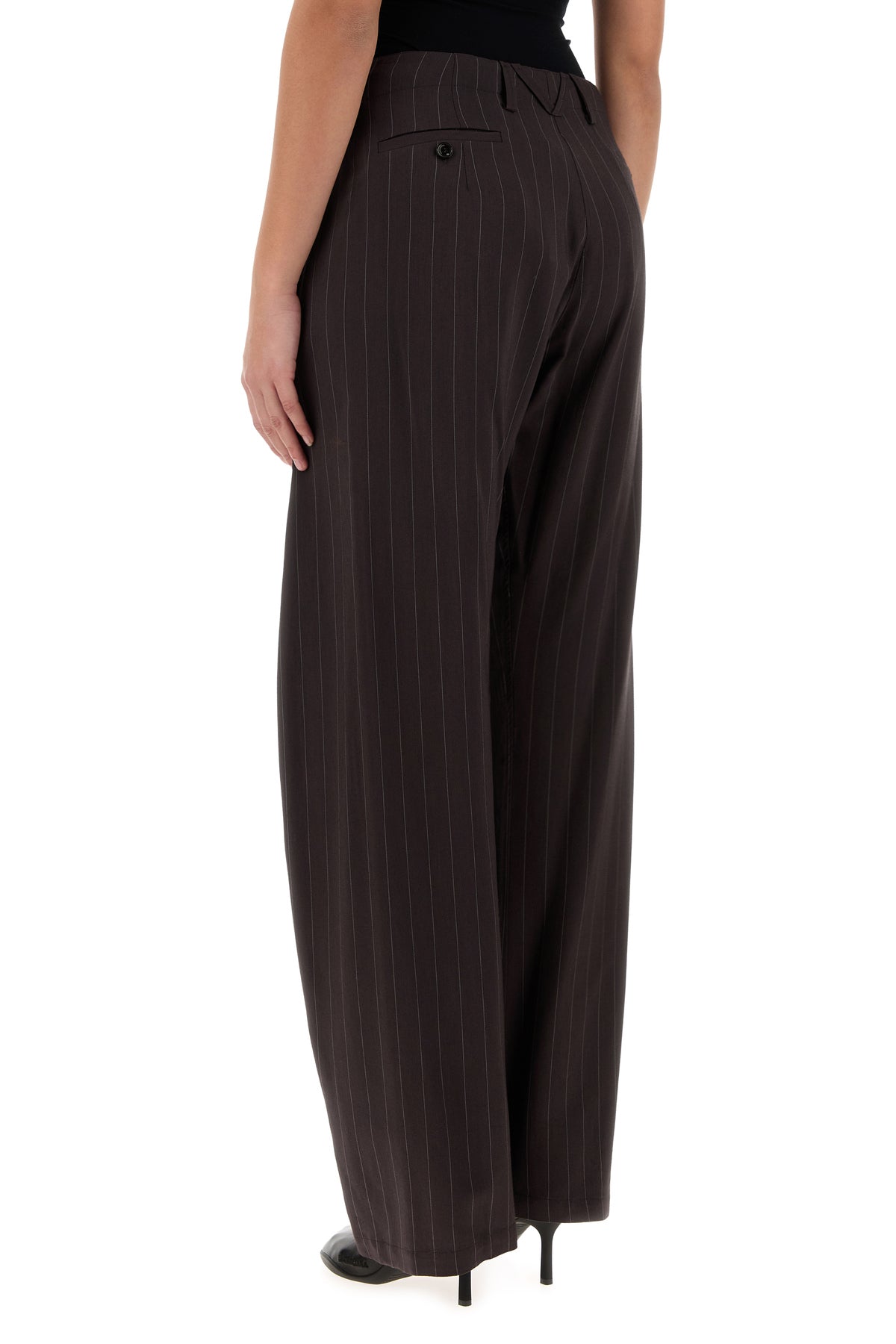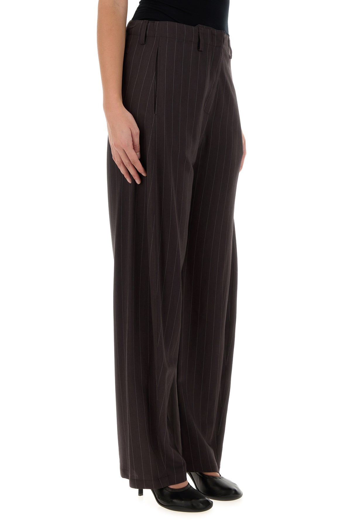 Pantalone realizzato in misto lana caratterizzato da ricamo a motivo gessato su tutta la superficie.