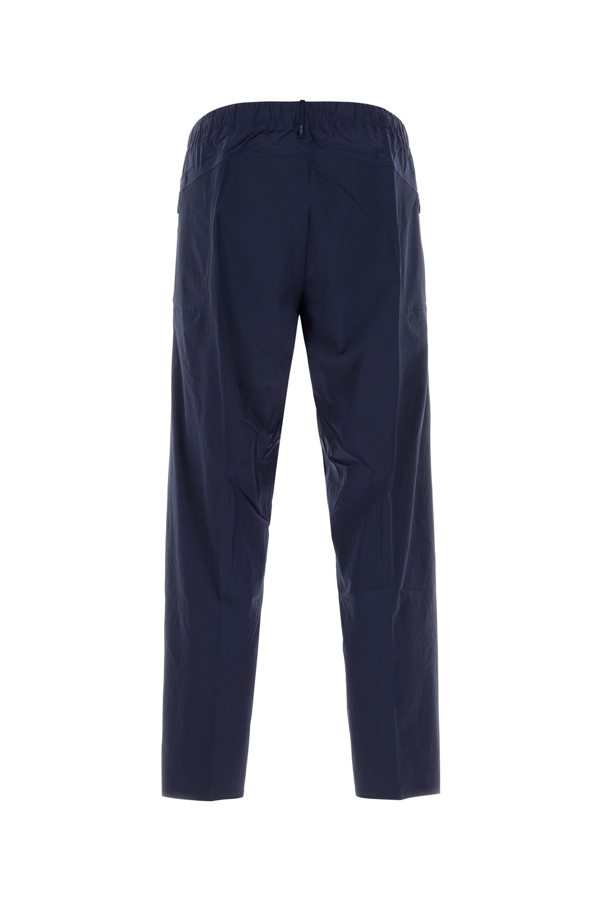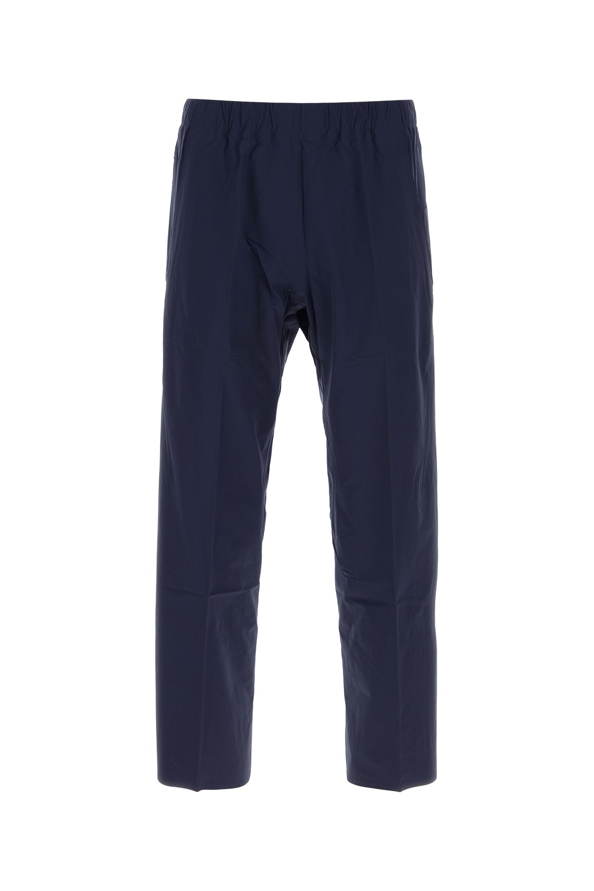 Pantalone realizzato in nylon stretch caratterizzato da pieghe centrali stirate.