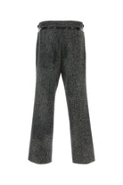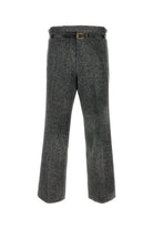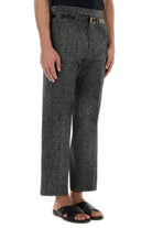 Pantalone realizzato in tweed di puro cotone arricchito da cintura decorativa in vita.
