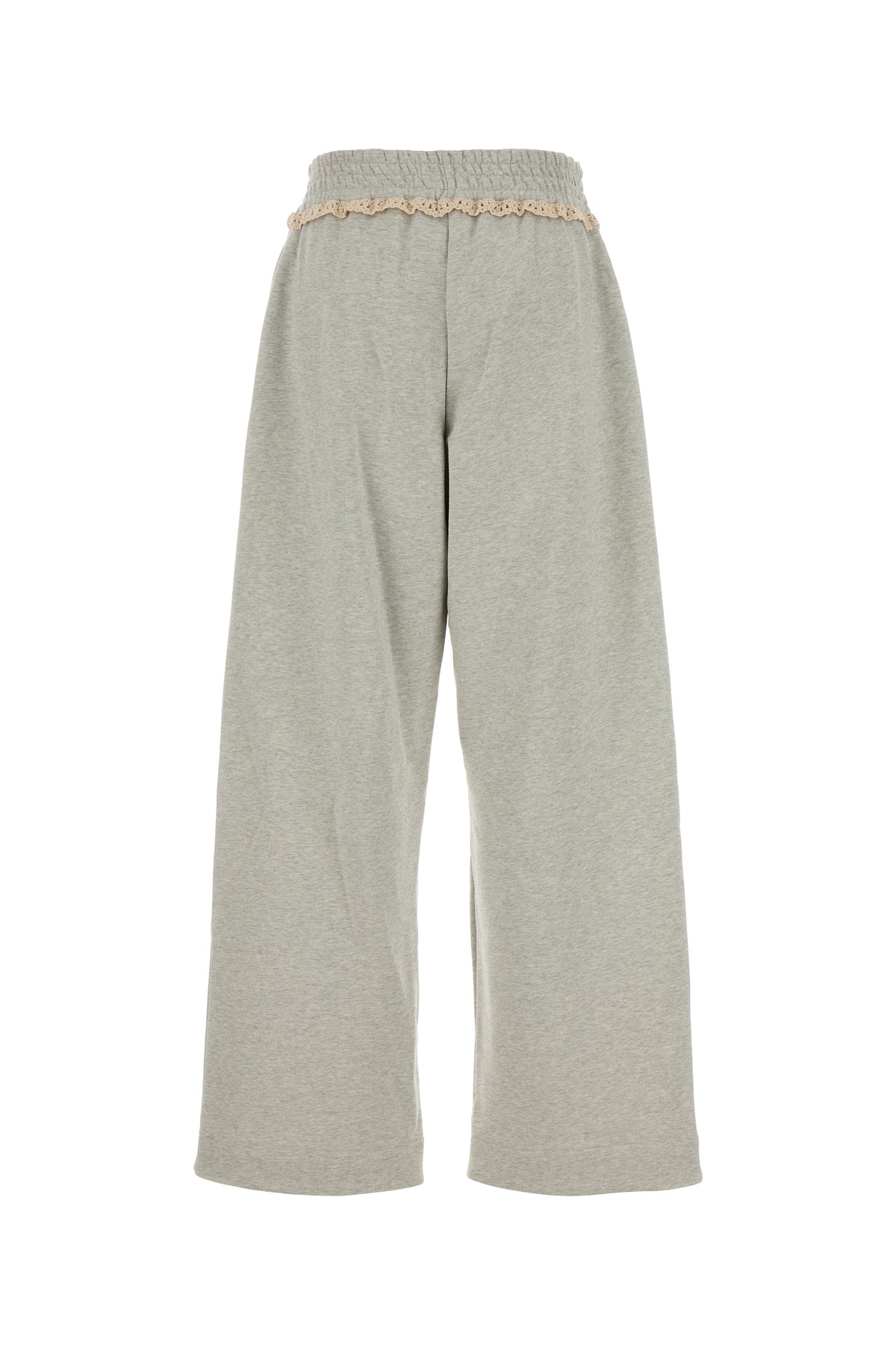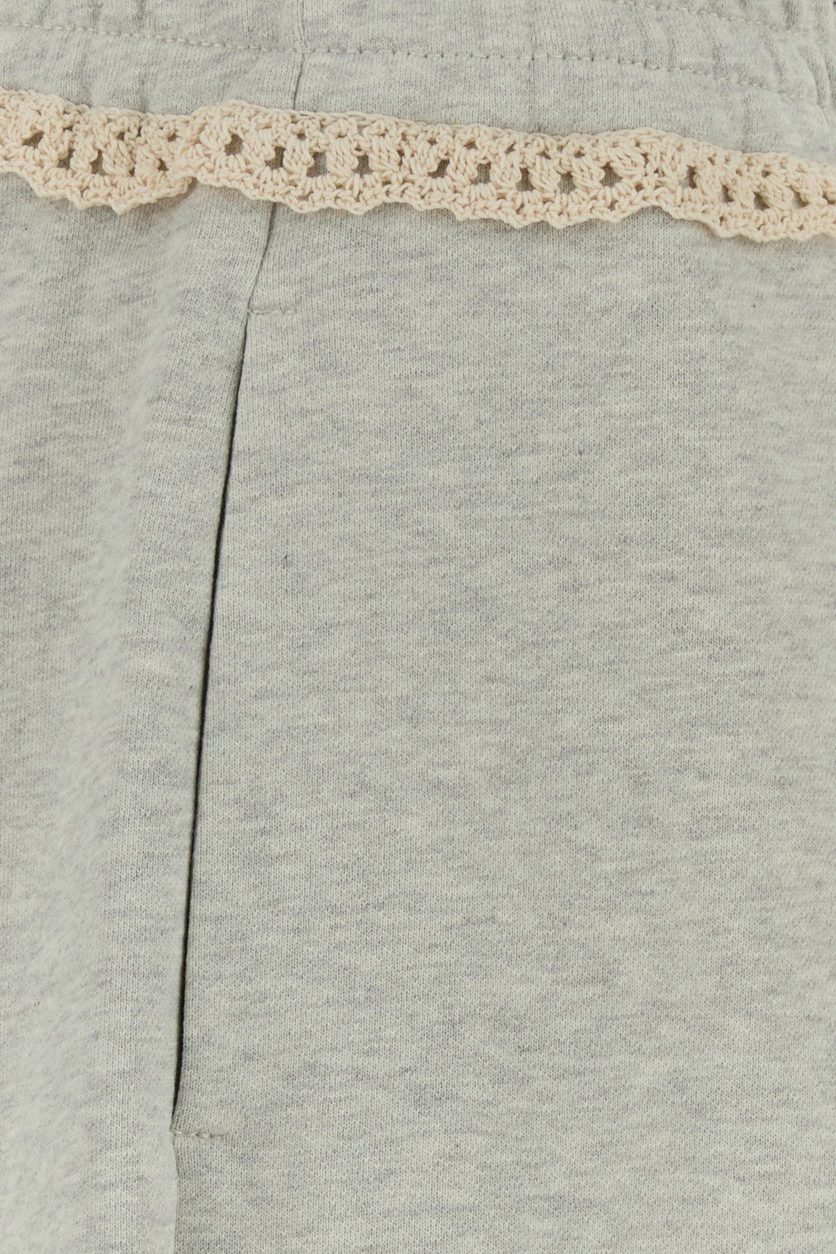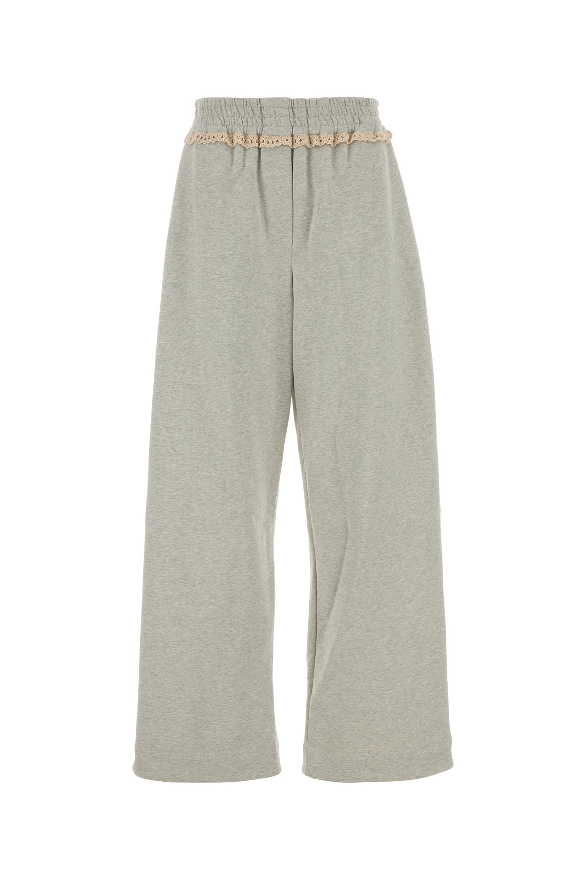 Pantalone jogging realizzato in cotone e cotone riciclato arricchito da inserto in crochet sulla parte superiore.