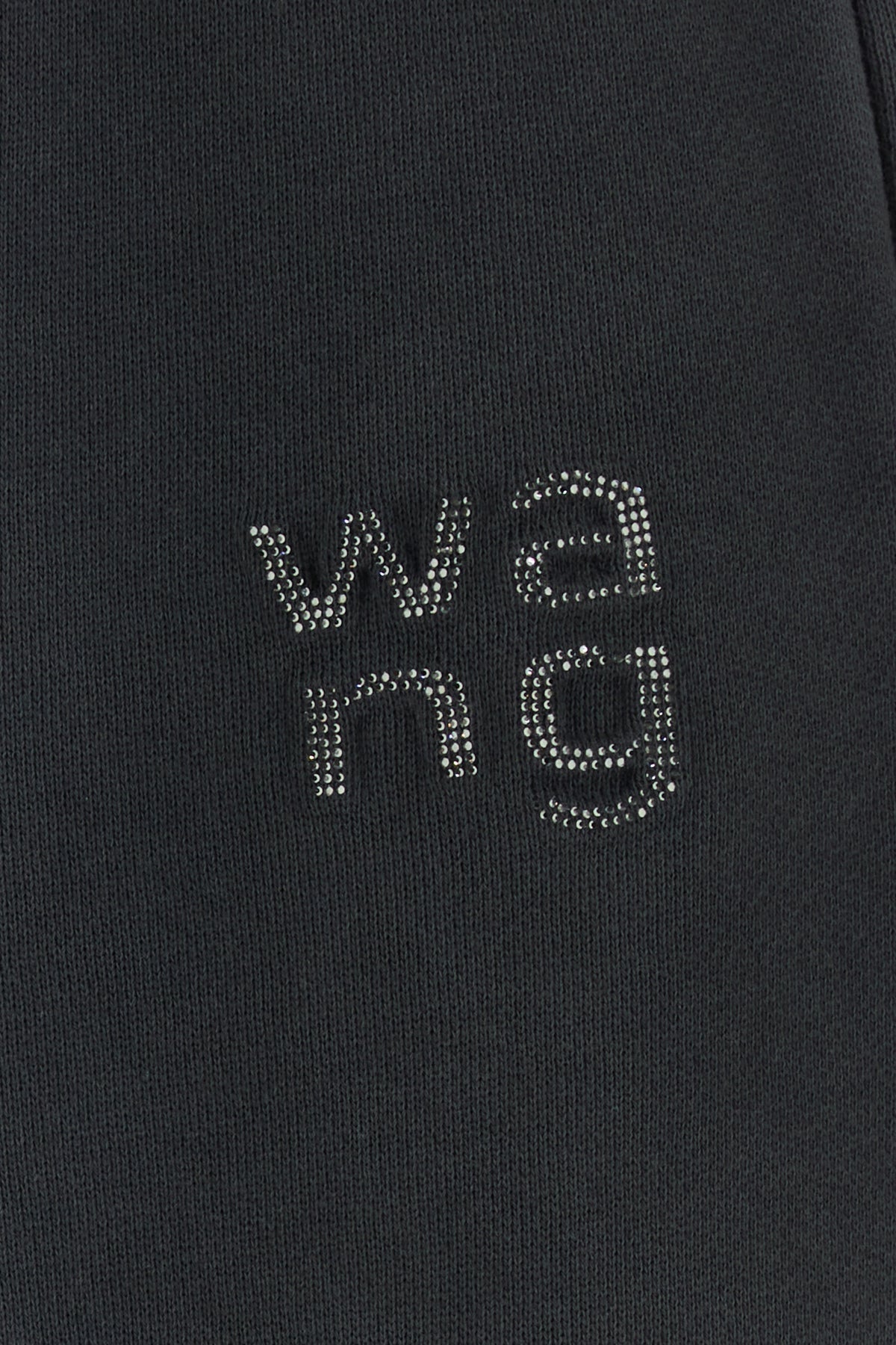 Pantalone jogging realizzato in misto cotone slavato arricchito da applicazione Wang con cristalli sulla parte frontale.