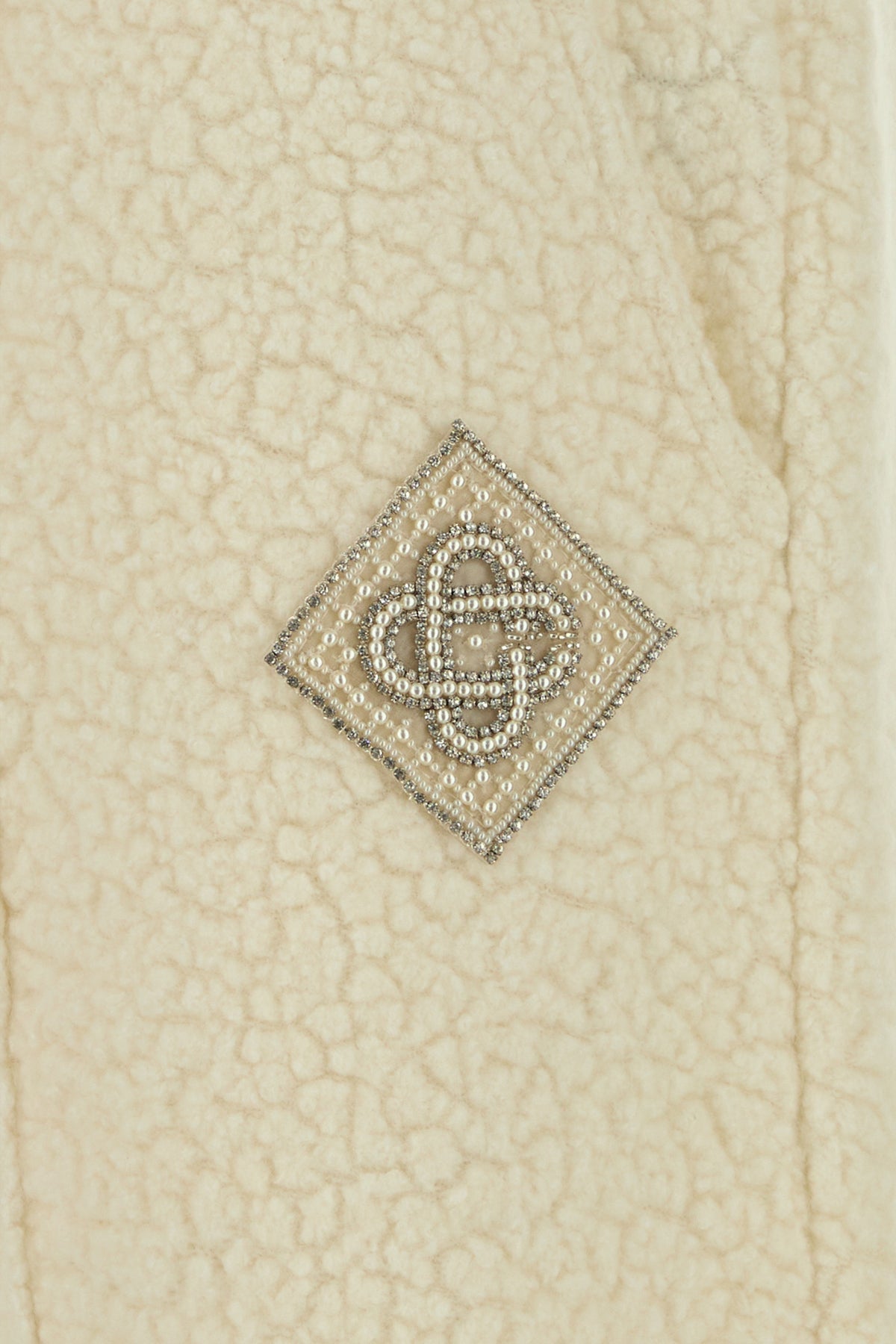 Pantalone jogging realizzato in teddy arricchito da applicazione logata sulla parte frontale.