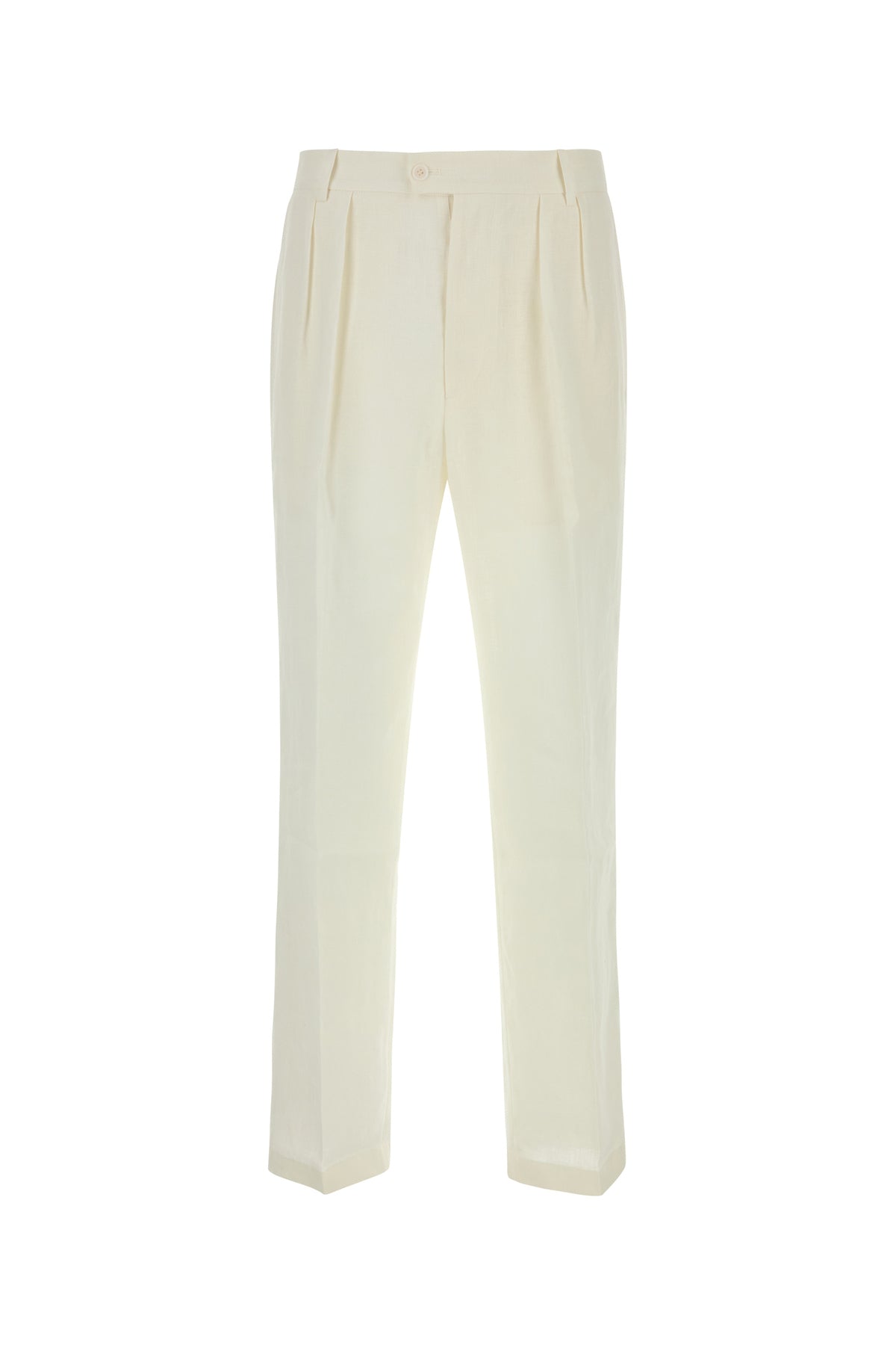 Pantalone realizzato in puro lino caratterizzato da pieghe invertite.