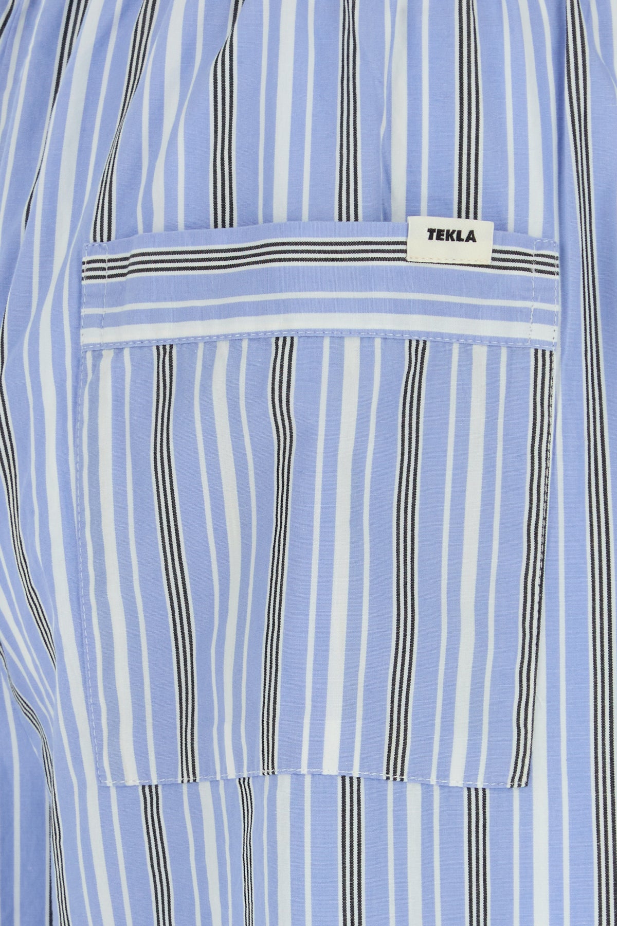 Pantalone pigiama realizzato in popeline di puro cotone caratterizzato da ricamo a righe su tutta la superficie arricchito da etichetta logata sul retro.