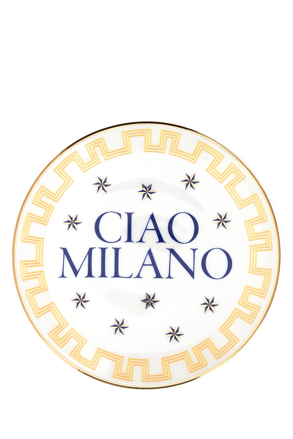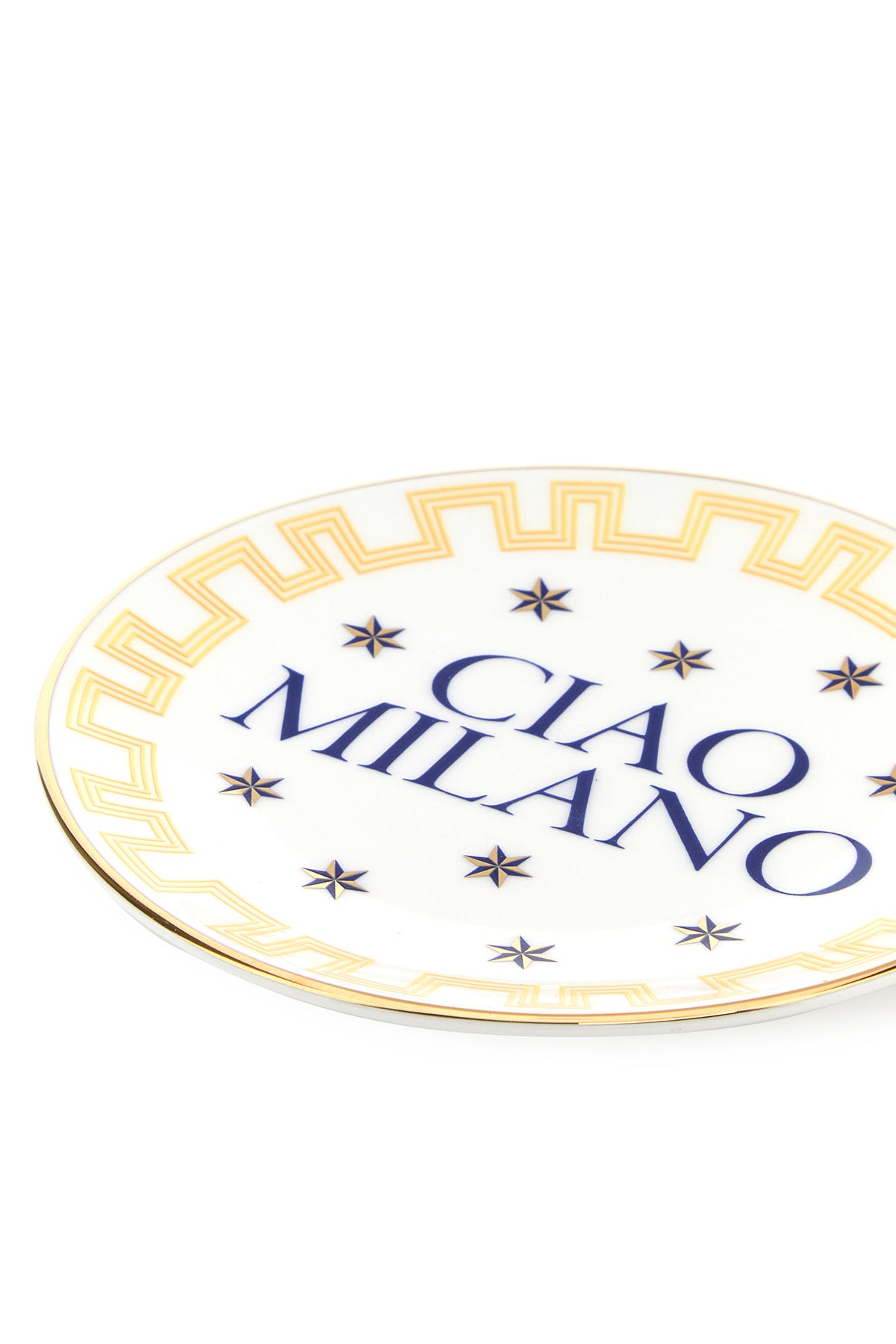 Piatto realizzato in porcellana arricchito da decorazione "Ciao Milano".