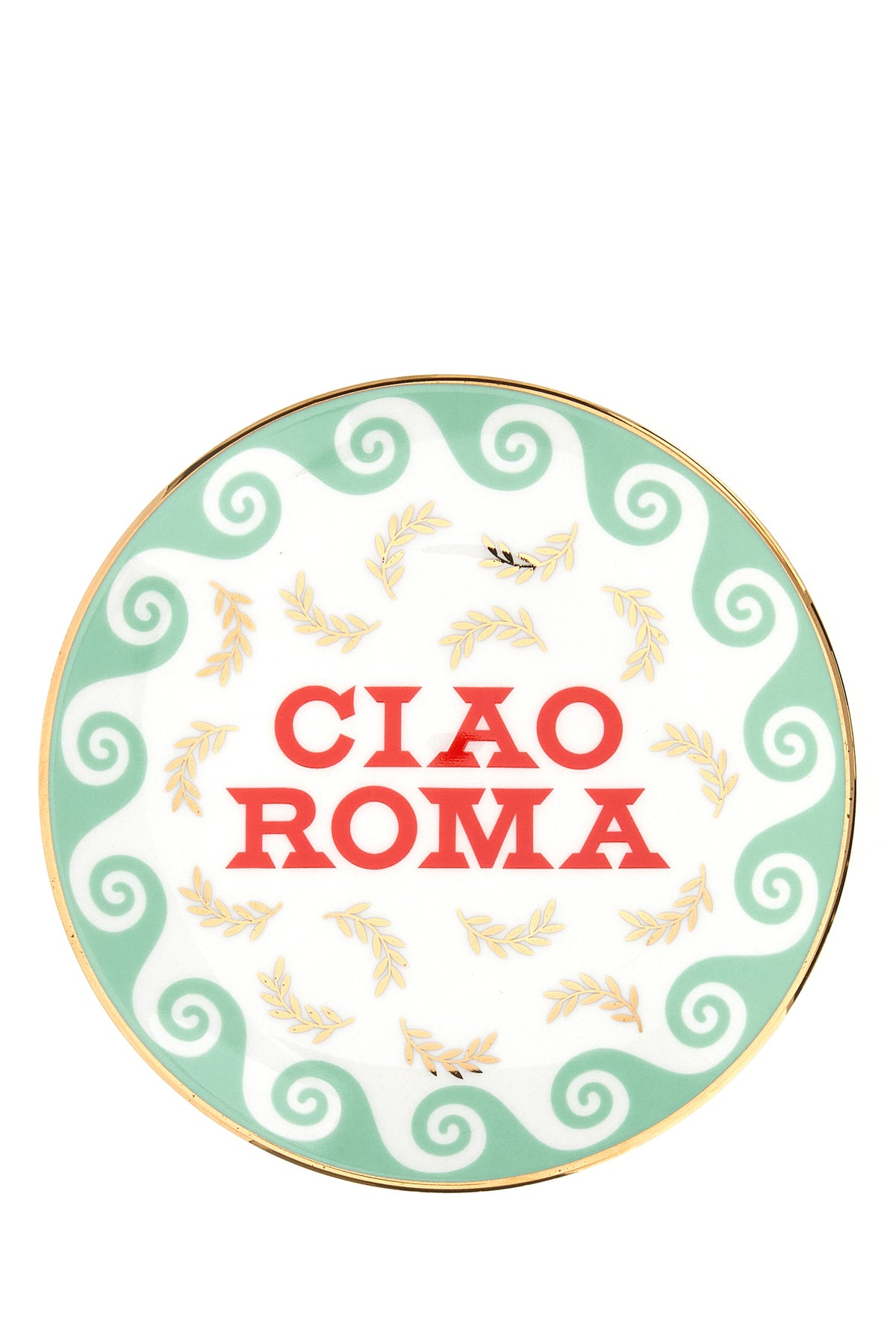 Piatto realizzato in porcellana arricchito da decorazione "Ciao Roma".