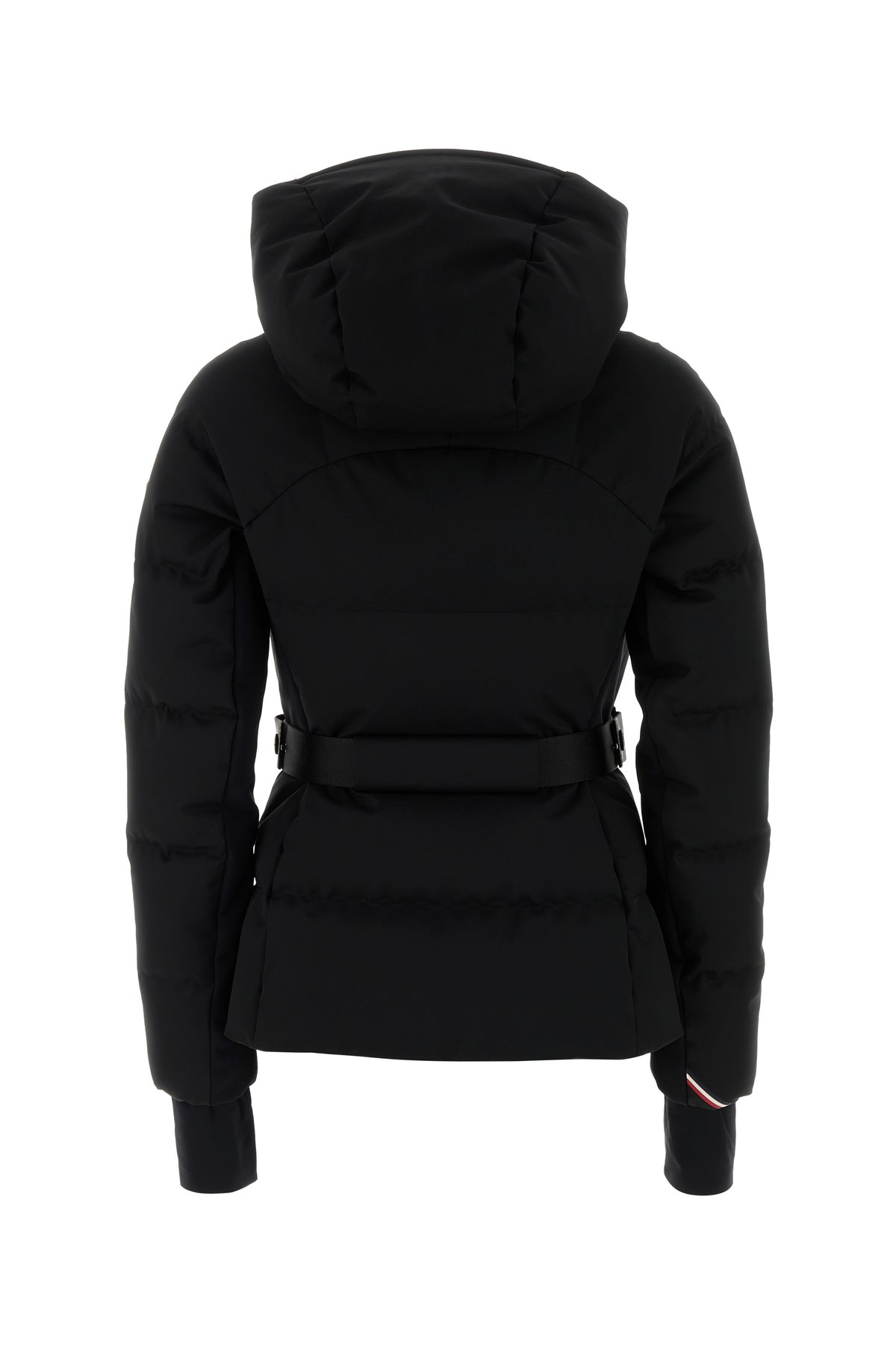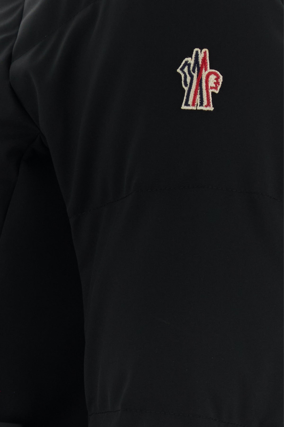 Piumino realizzato in nylon stretch trapuntato arricchito da applicazione logata sulla manica.