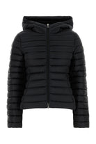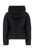 Piumino realizzato in nylon trapunto arricchito da applicazione logata a contrasto sulla manica.