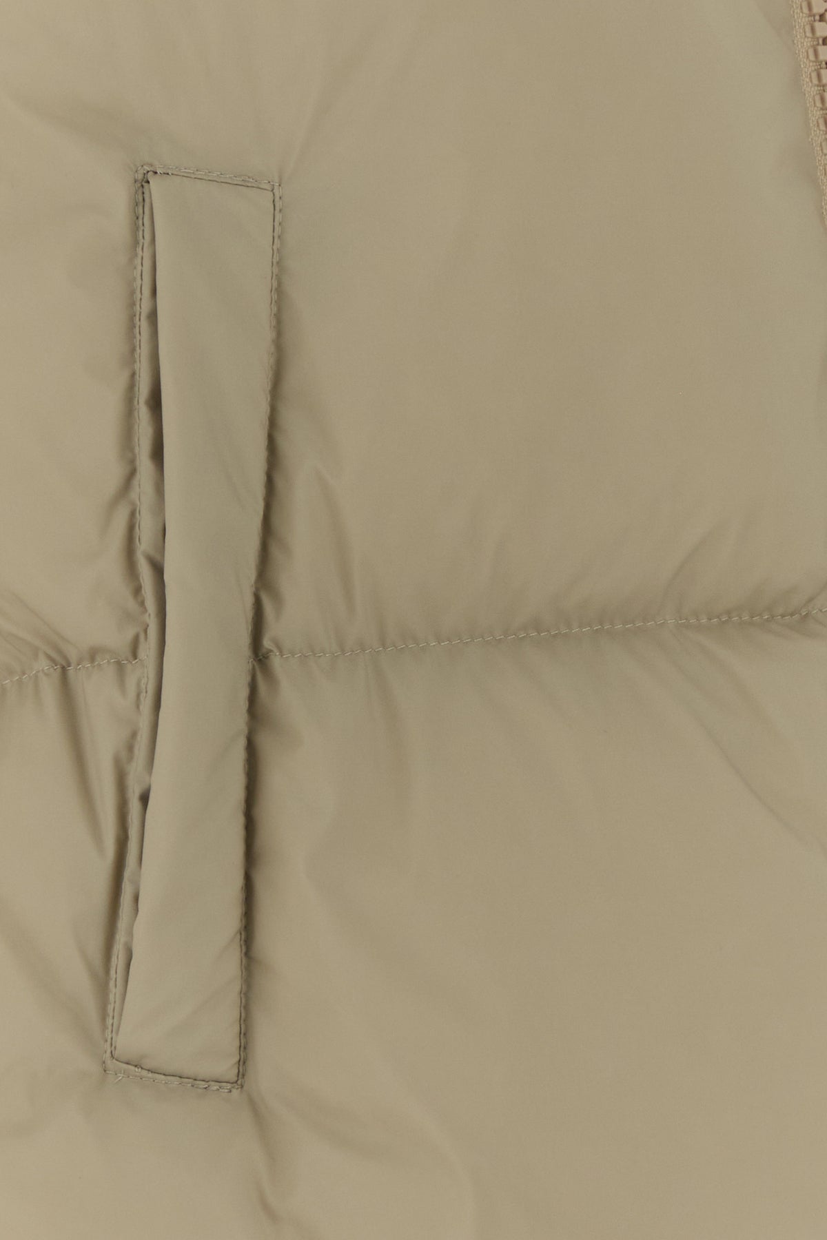 Piumino realizzato in nylon trapuntato arricchito da targhetta metallica logata sul retro.