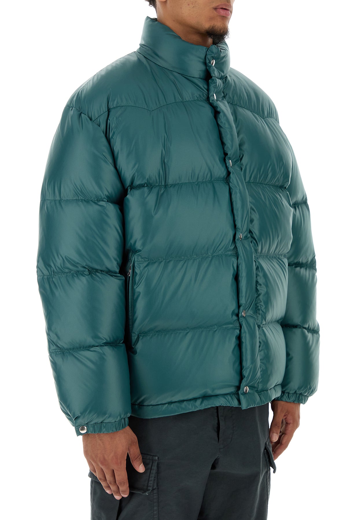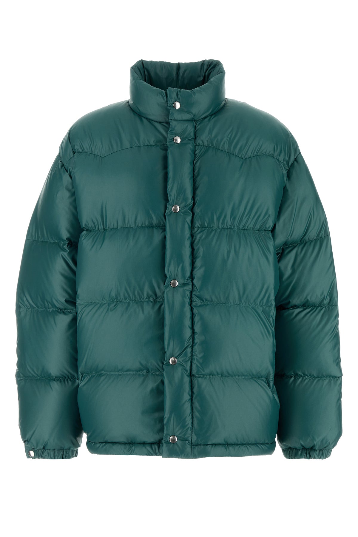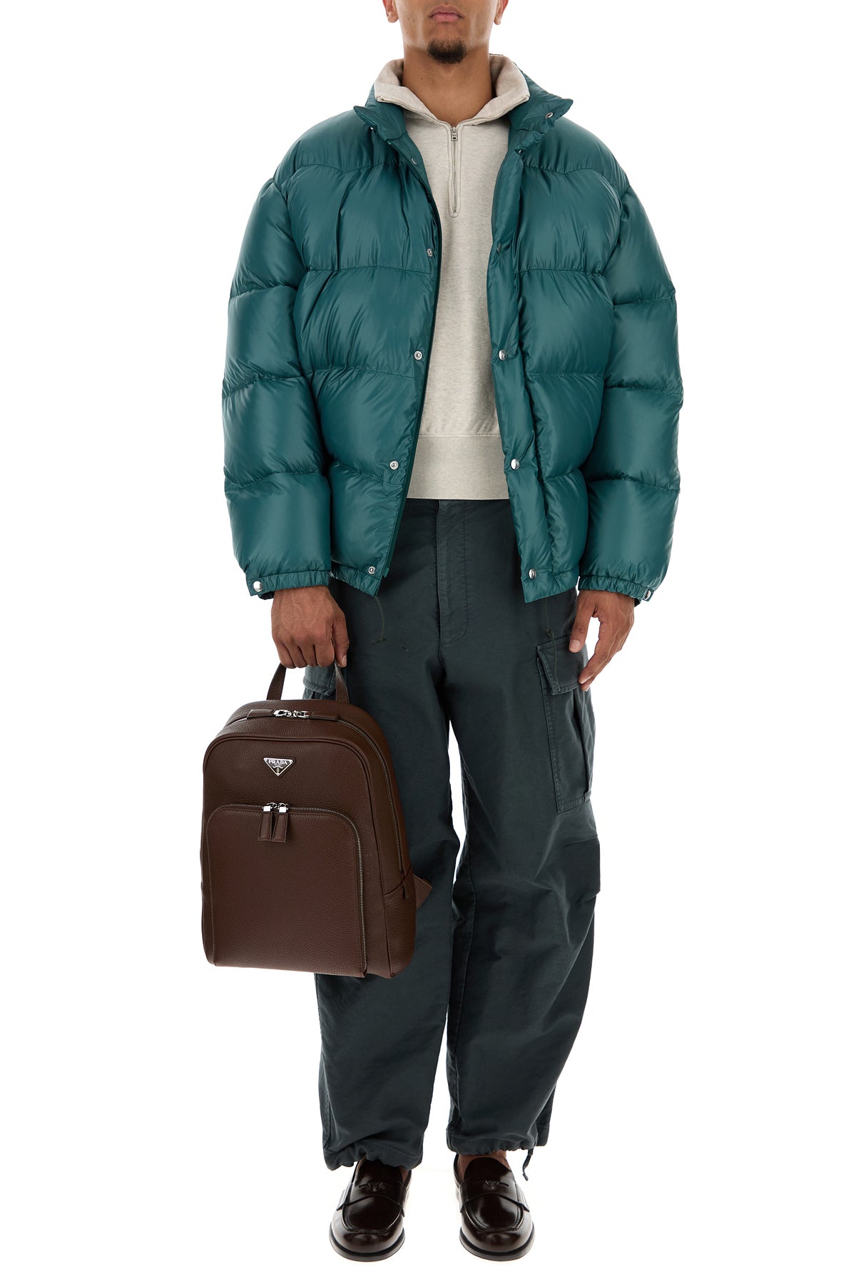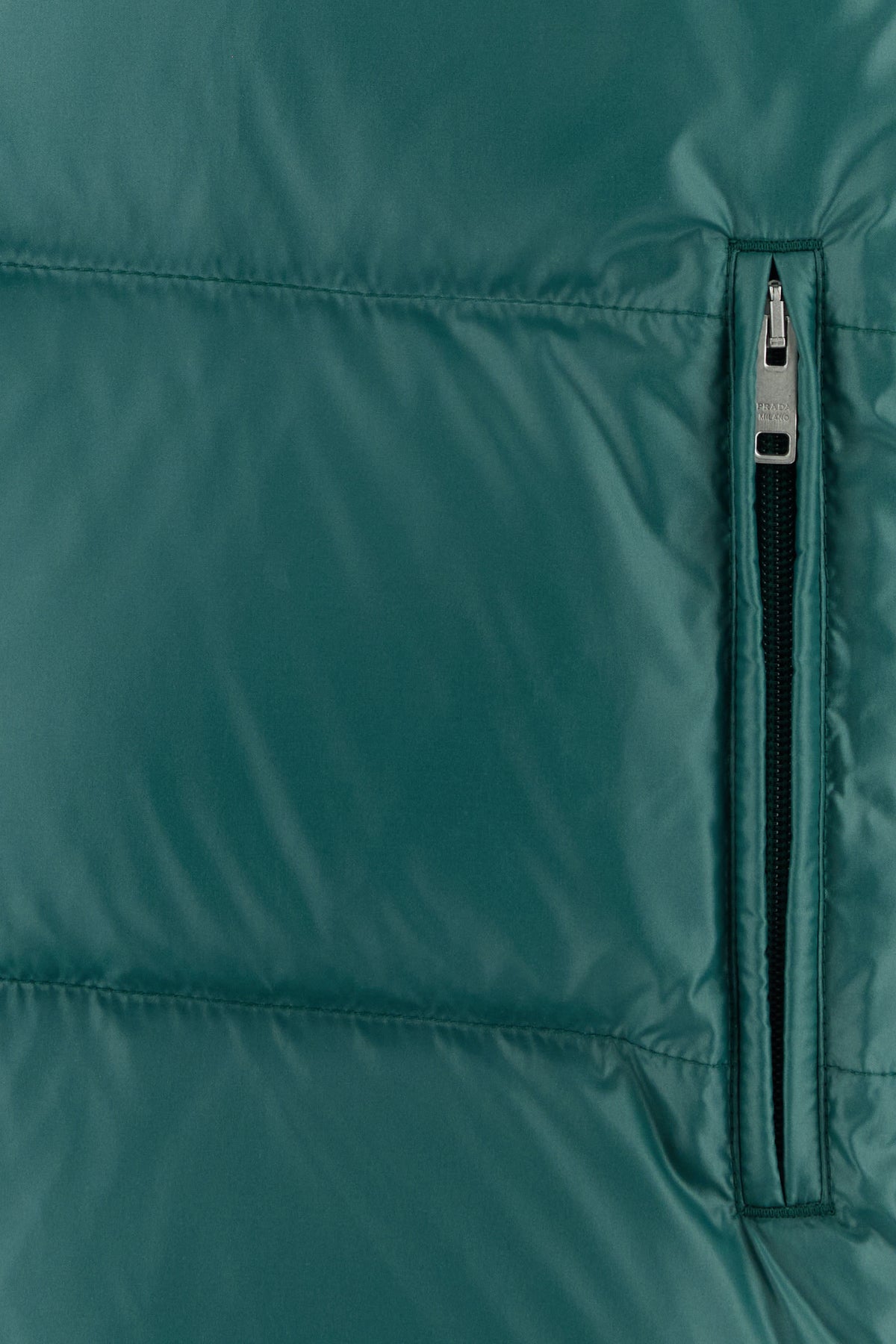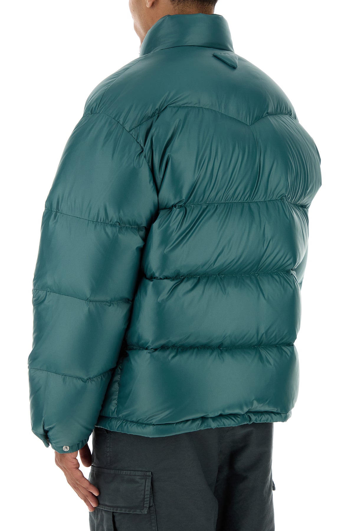 Piumino realizzato in Re-Nylon trapuntato arricchito da iconico triangolo in tessuto tonale sul retro.