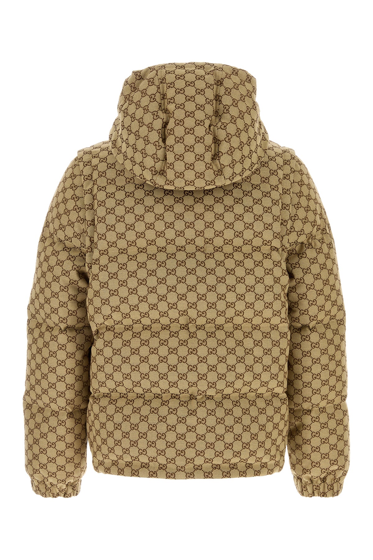 Piumino realizzato in tessuto GG caratterizzato da maniche amovibili.