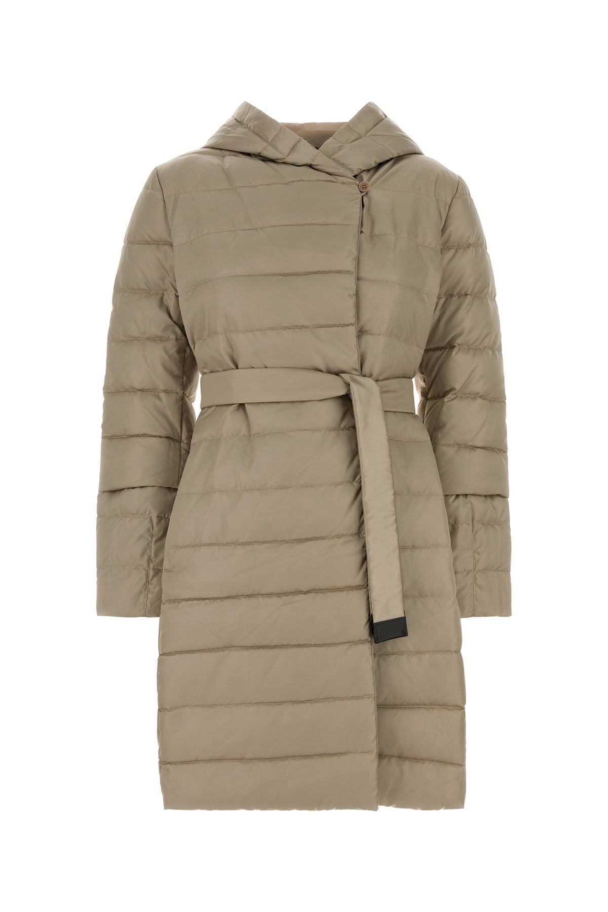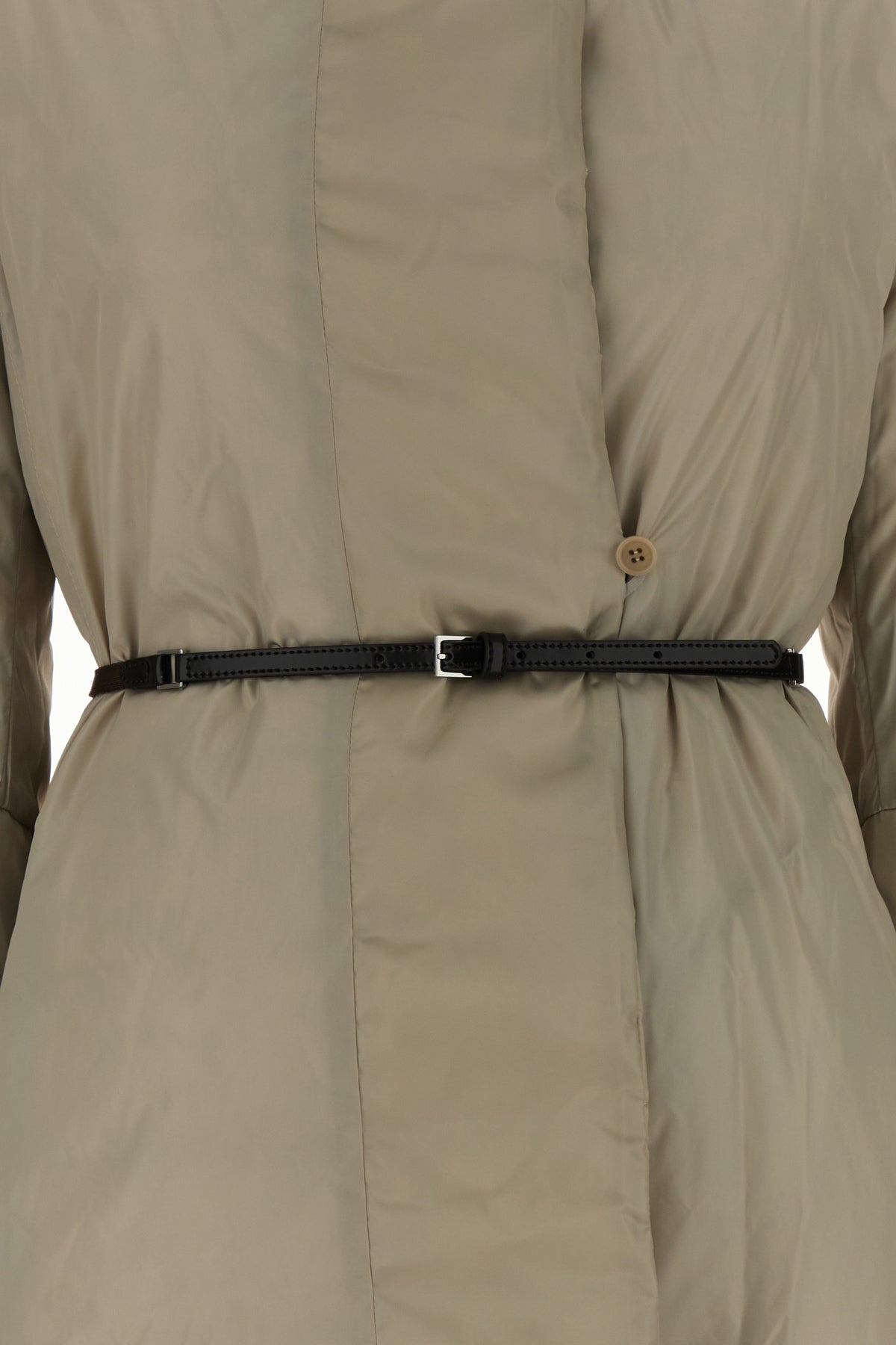 Piumino realizzato in misto nylon trapuntato arricchito da cintura amovibile da annodare in vita.