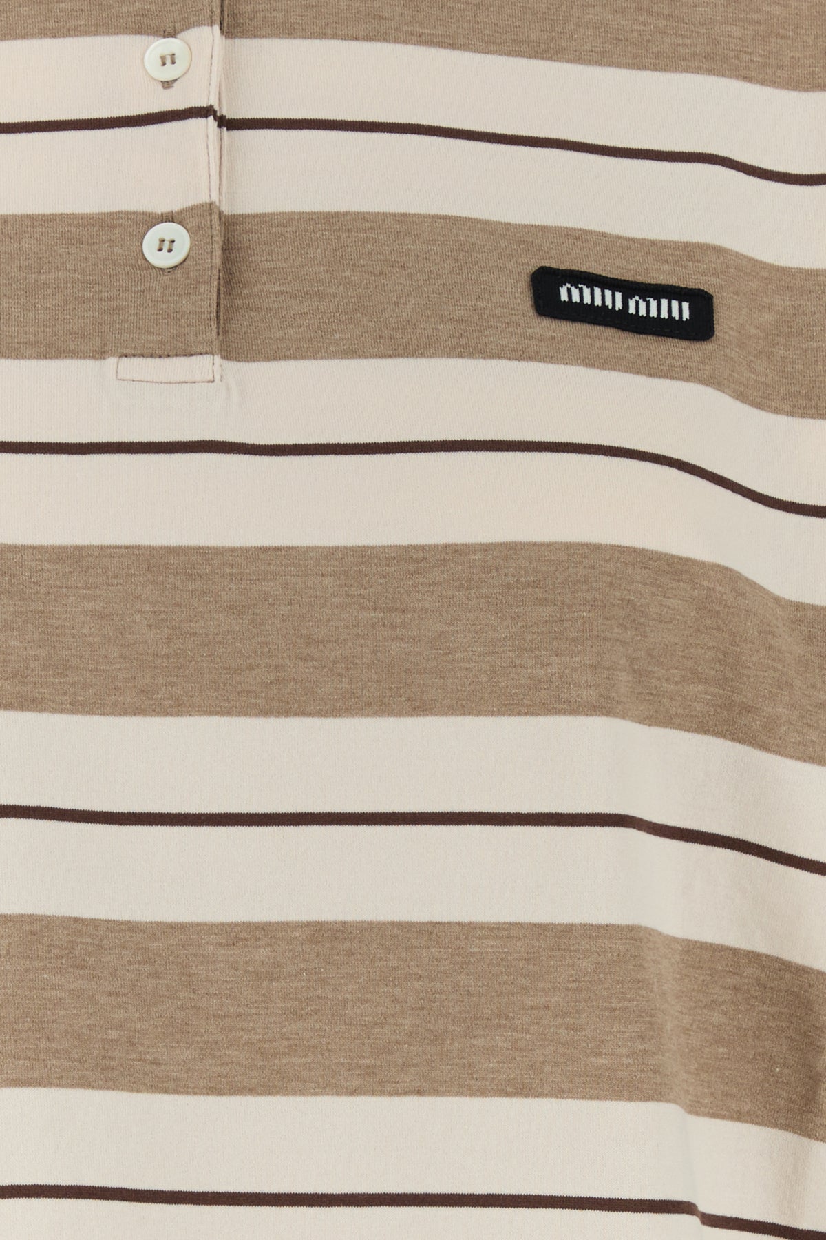 Polo a maniche lunghe realizzata in puro cotone caratterizzata da ricamo a righe su tutta la superficie arricchito da etichetta logata sul petto.