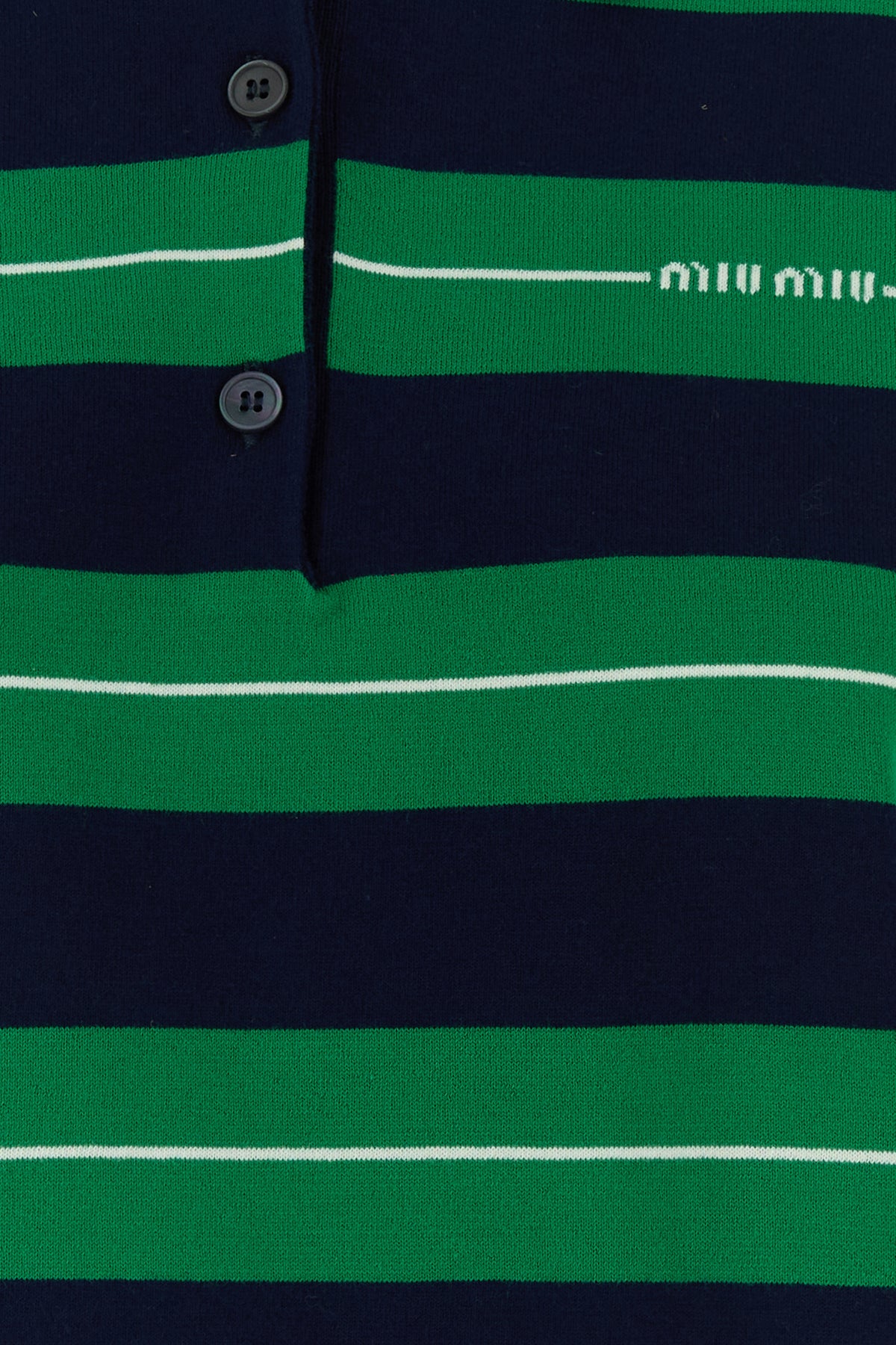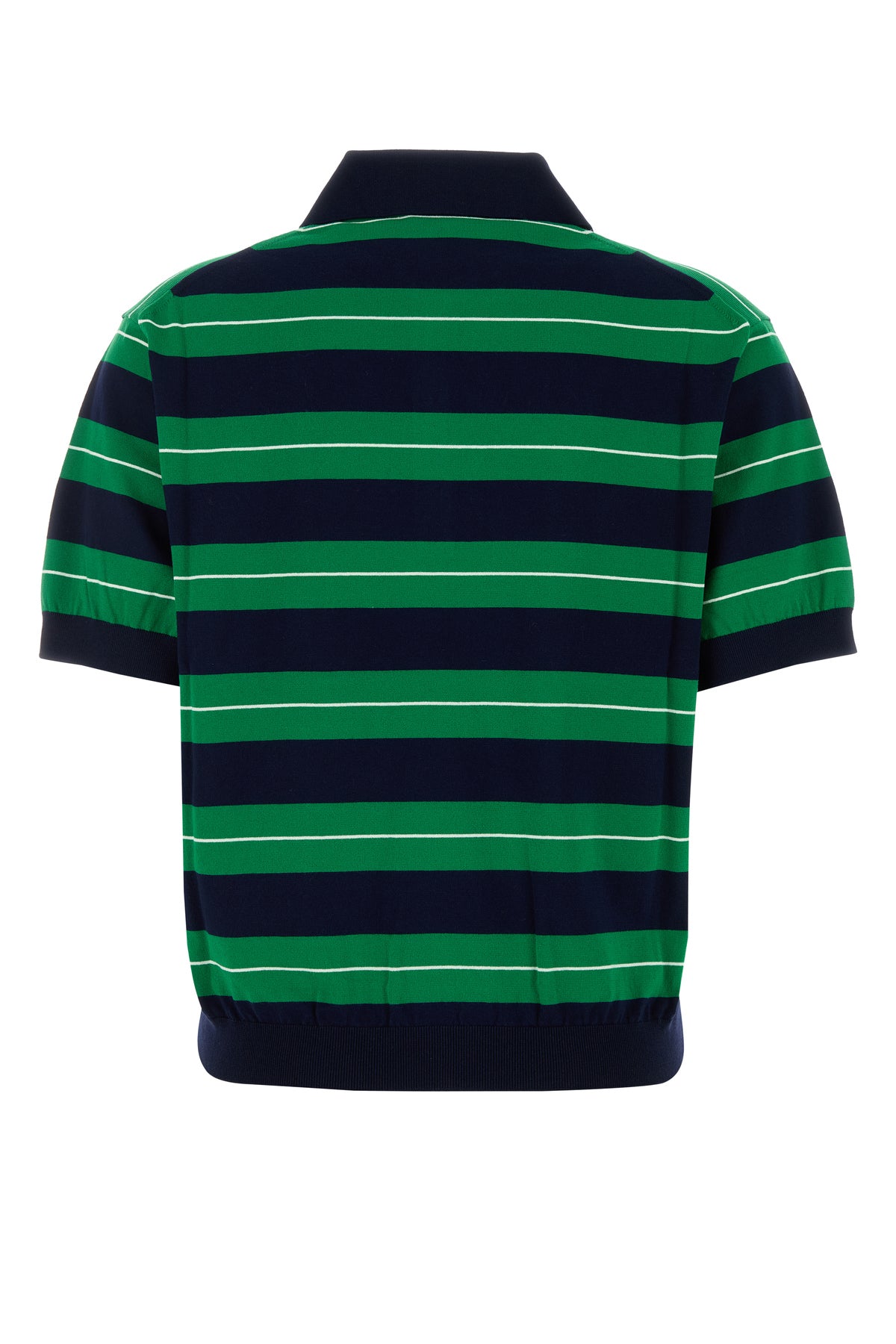Polo realizzata in puro cotone caratterizzata da ricamo a righe su tutta la superficie e logo ricamato sul petto.