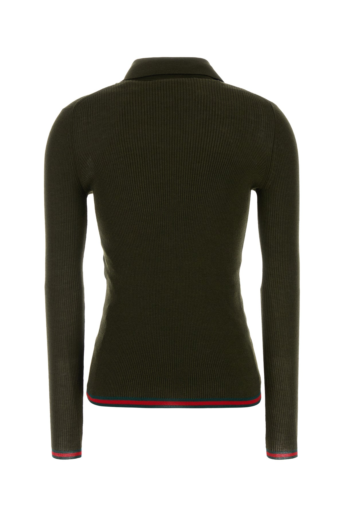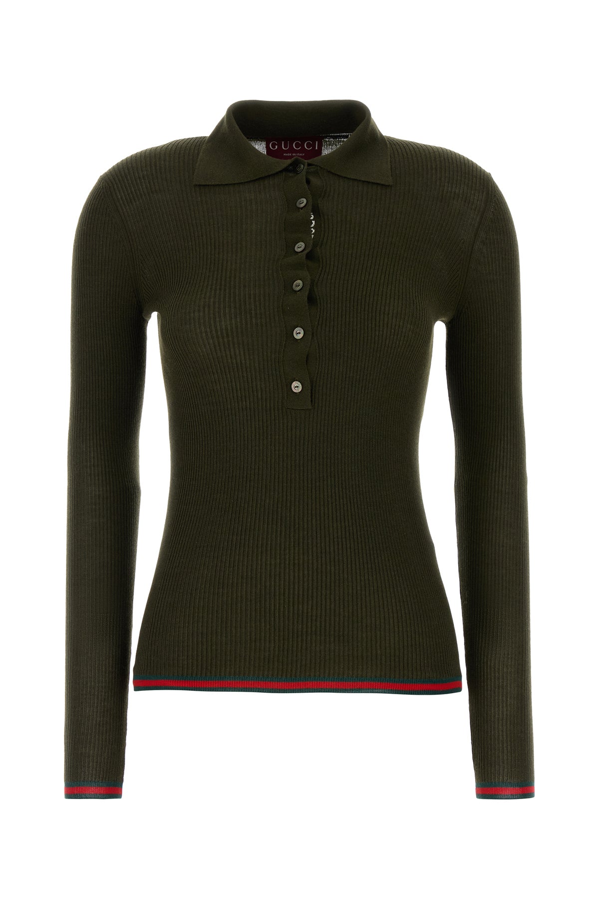 Polo a maniche lunghe realizzata in cashmere e seta a costine caratterizzata da ricamo Nastro Web sul fondo e sui polsini.