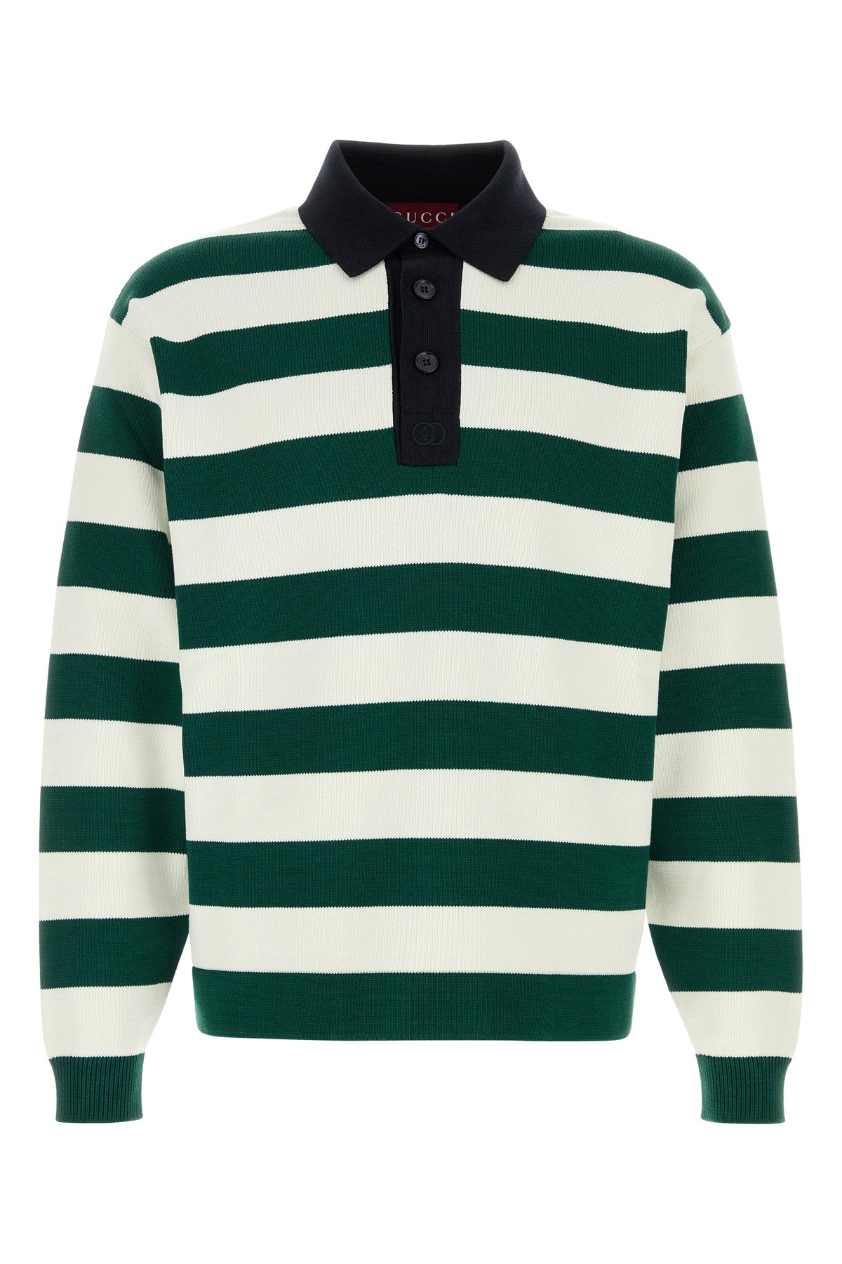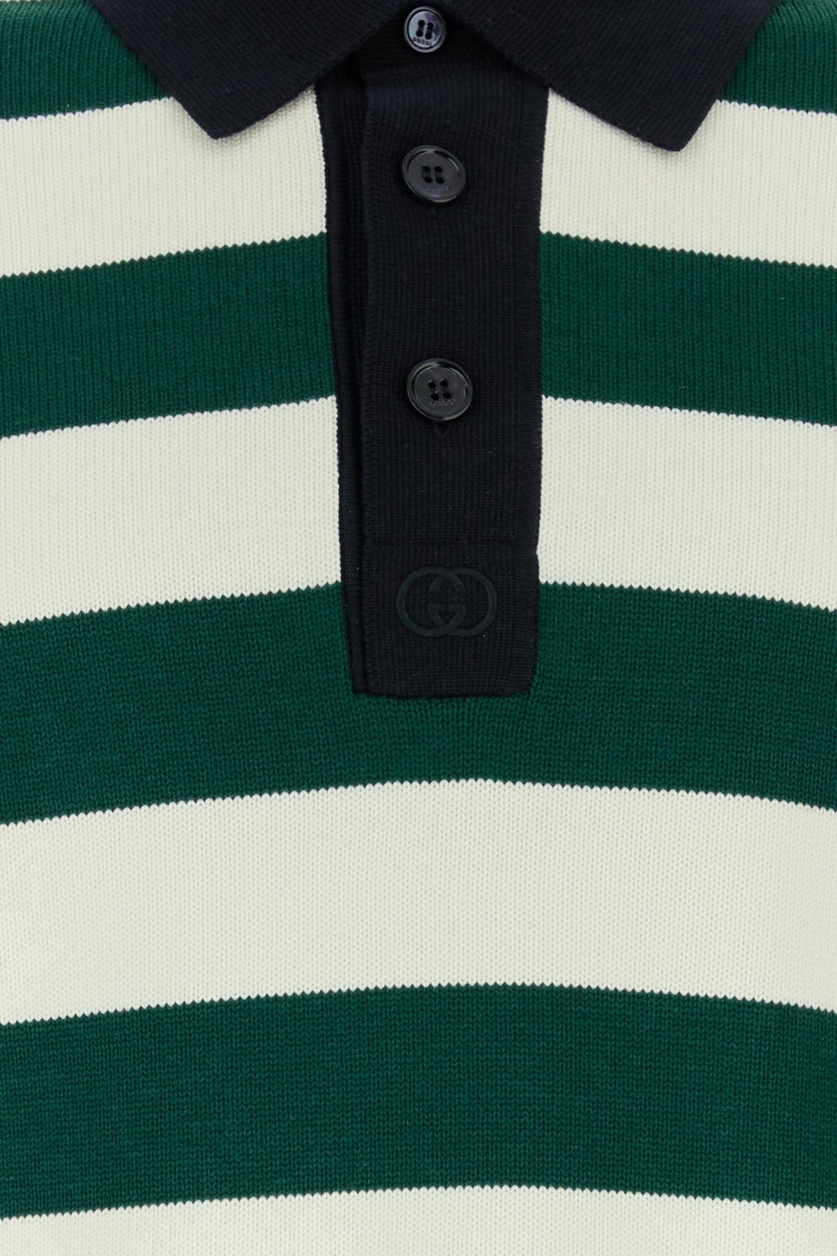 Polo realizzata in seta e cotone caratterizzata da ricamo a righe su tutta la superficie.