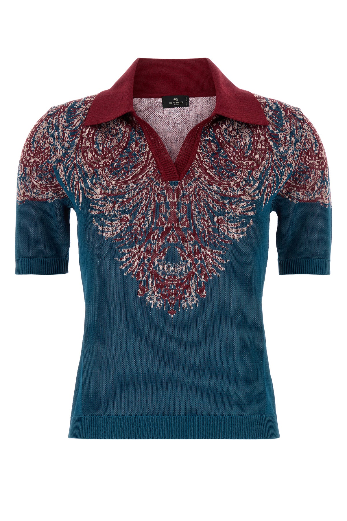 Polo realizzata in misto viscosa caratterizzata da particolare ricamo sulla parte superiore.