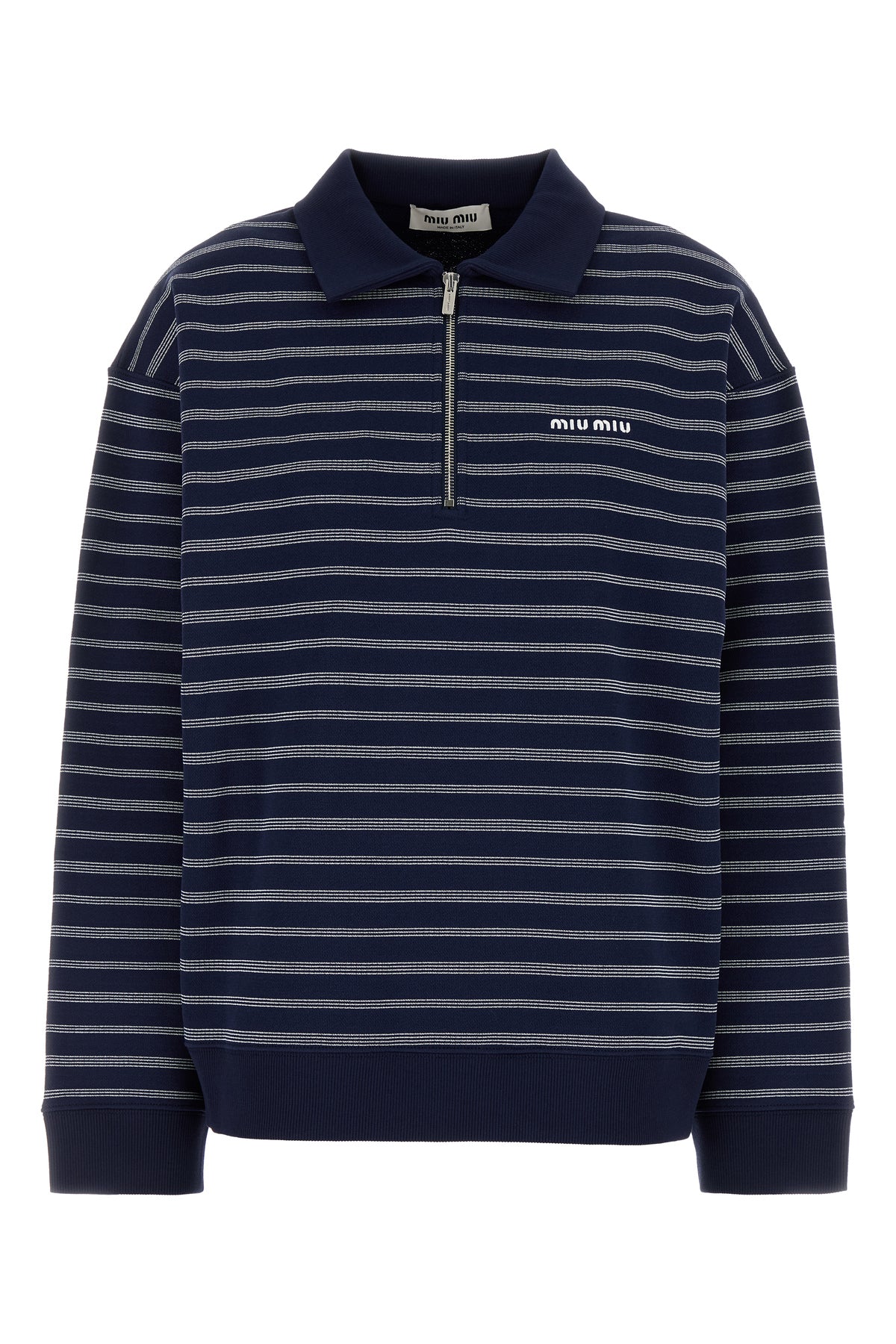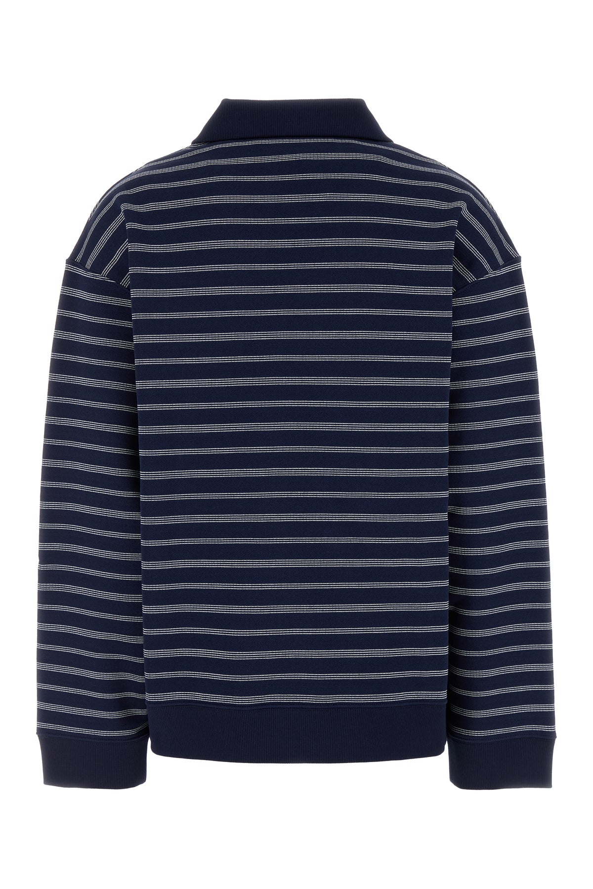 Polo oversize a maniche lunghe realizzata in puro cotone caratterizzata da ricamo a righe su tutta la superficie e logo ricamato sul petto.