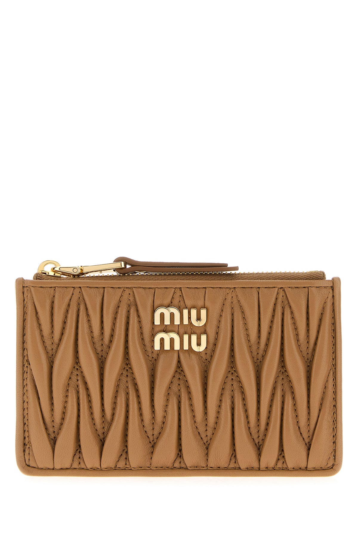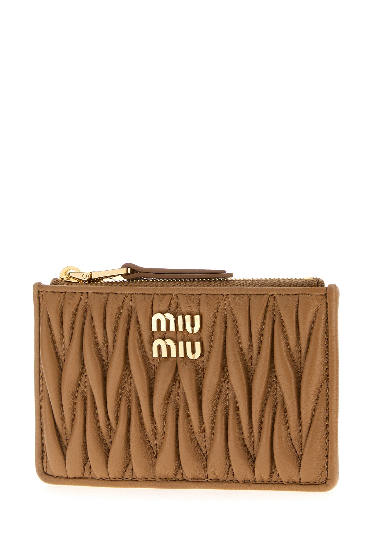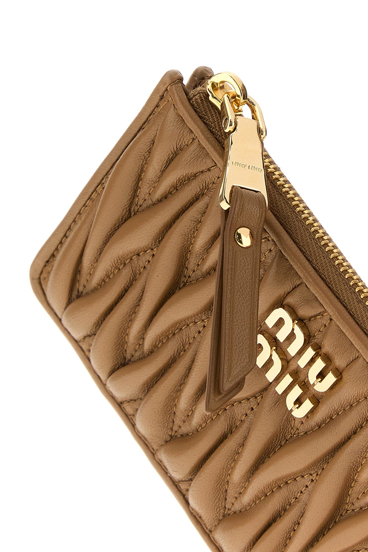Portacarte realizzato in nappa matelassé arricchito da logo in lettere metalliche sulla parte frontale.