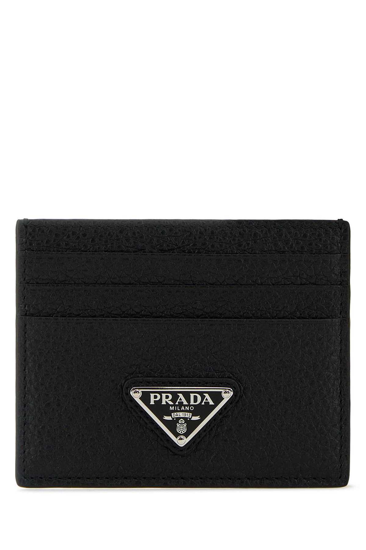 Portacarte realizzato in pelle di daino martellata arricchito da iconico triangolo metallico sulla parte frontale.