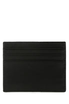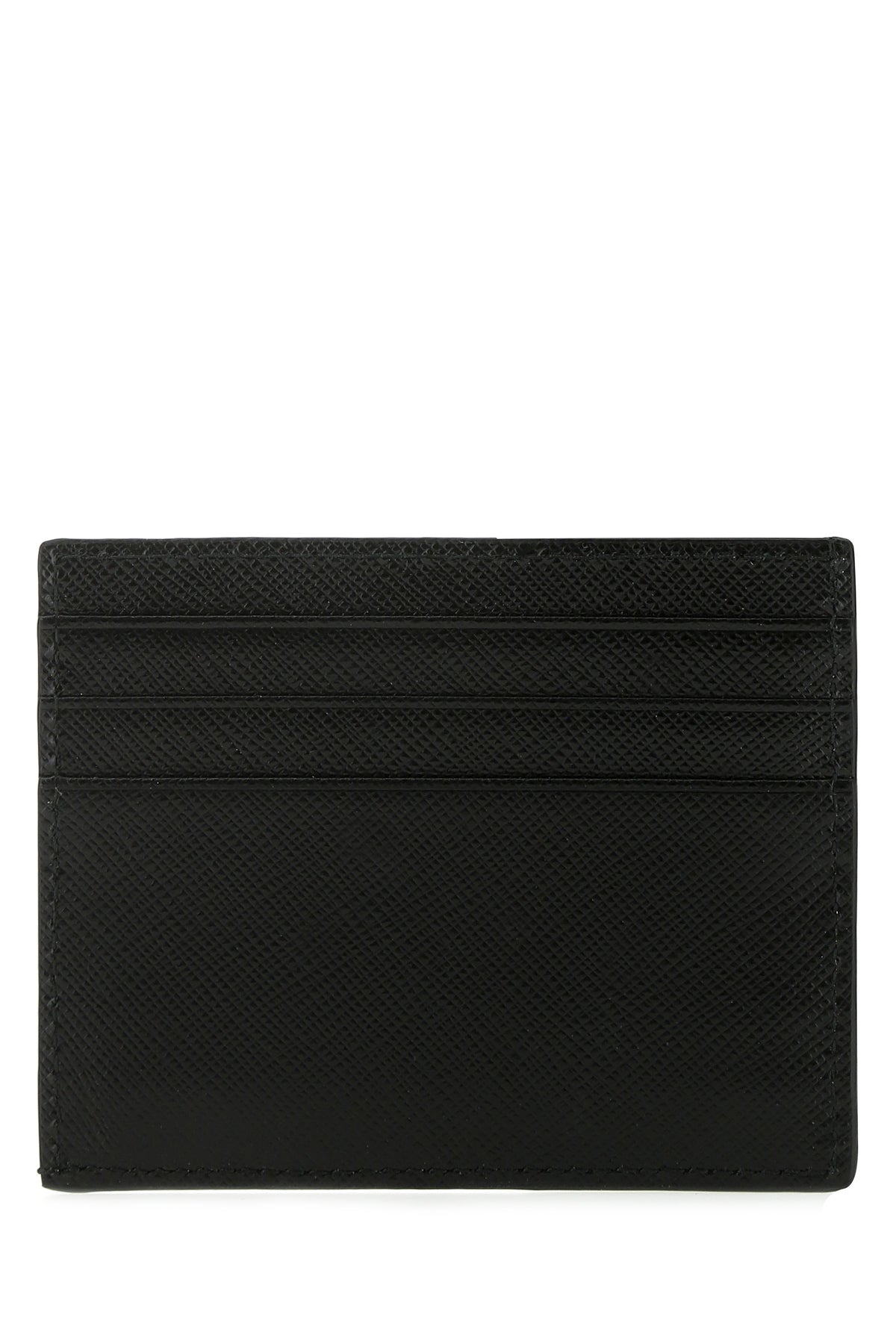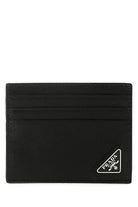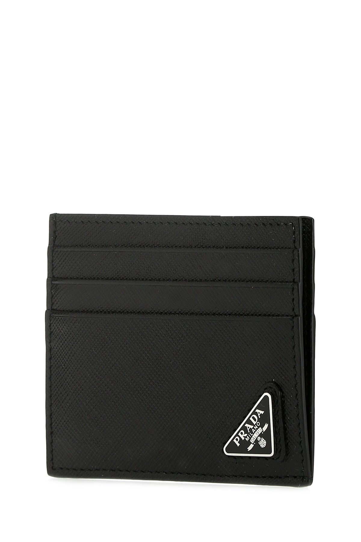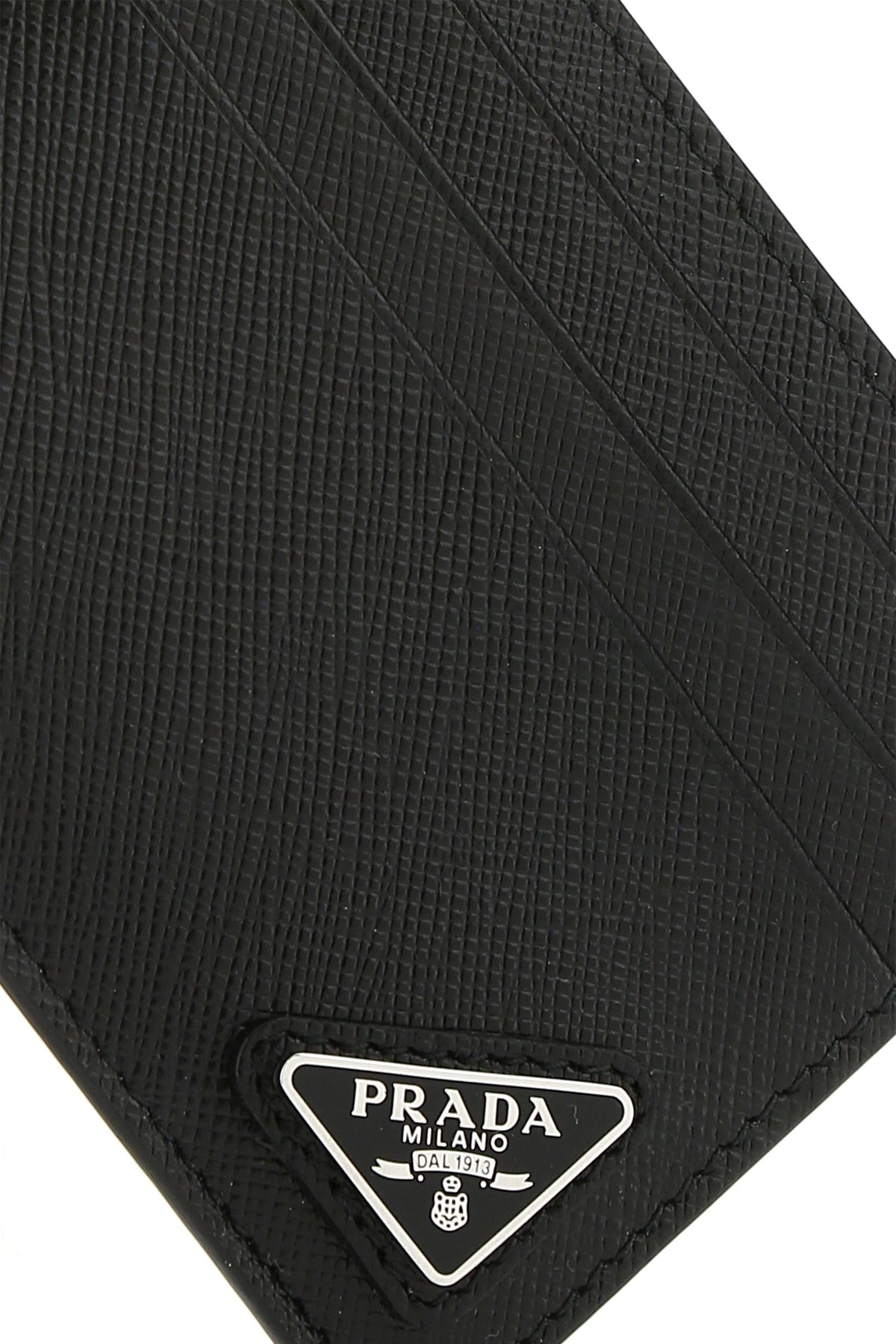 Portacarte realizzato in pelle Saffiano arricchito da iconico triangolo metallico logato sulla parte frontale.