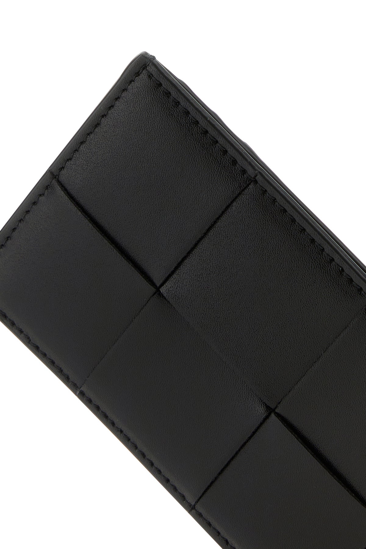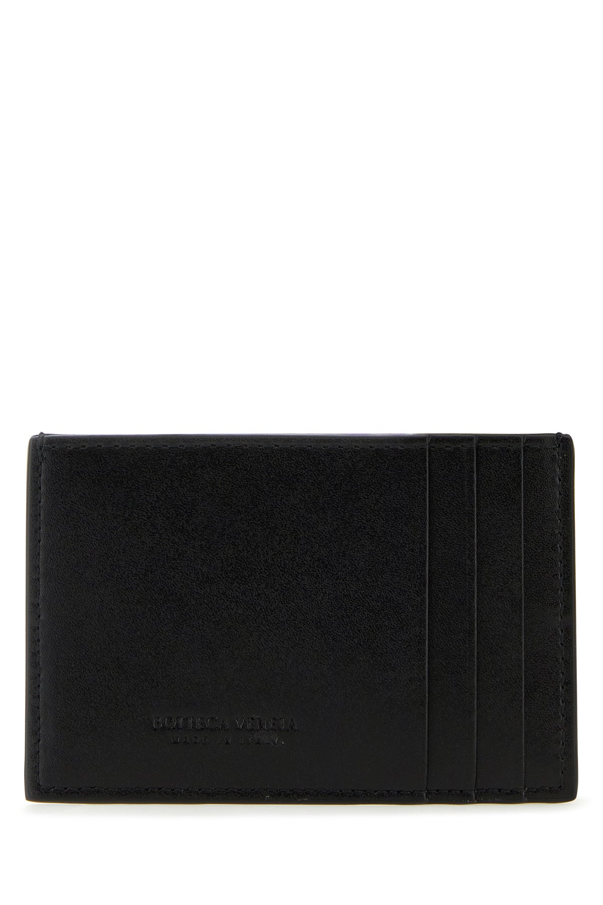 Portacarte realizzato in pelle di vitello caratterizzato da iconico motivo Intrecciato sulla parte frontale e logo impresso sul retro.