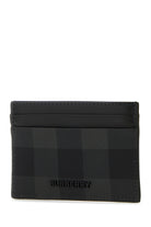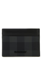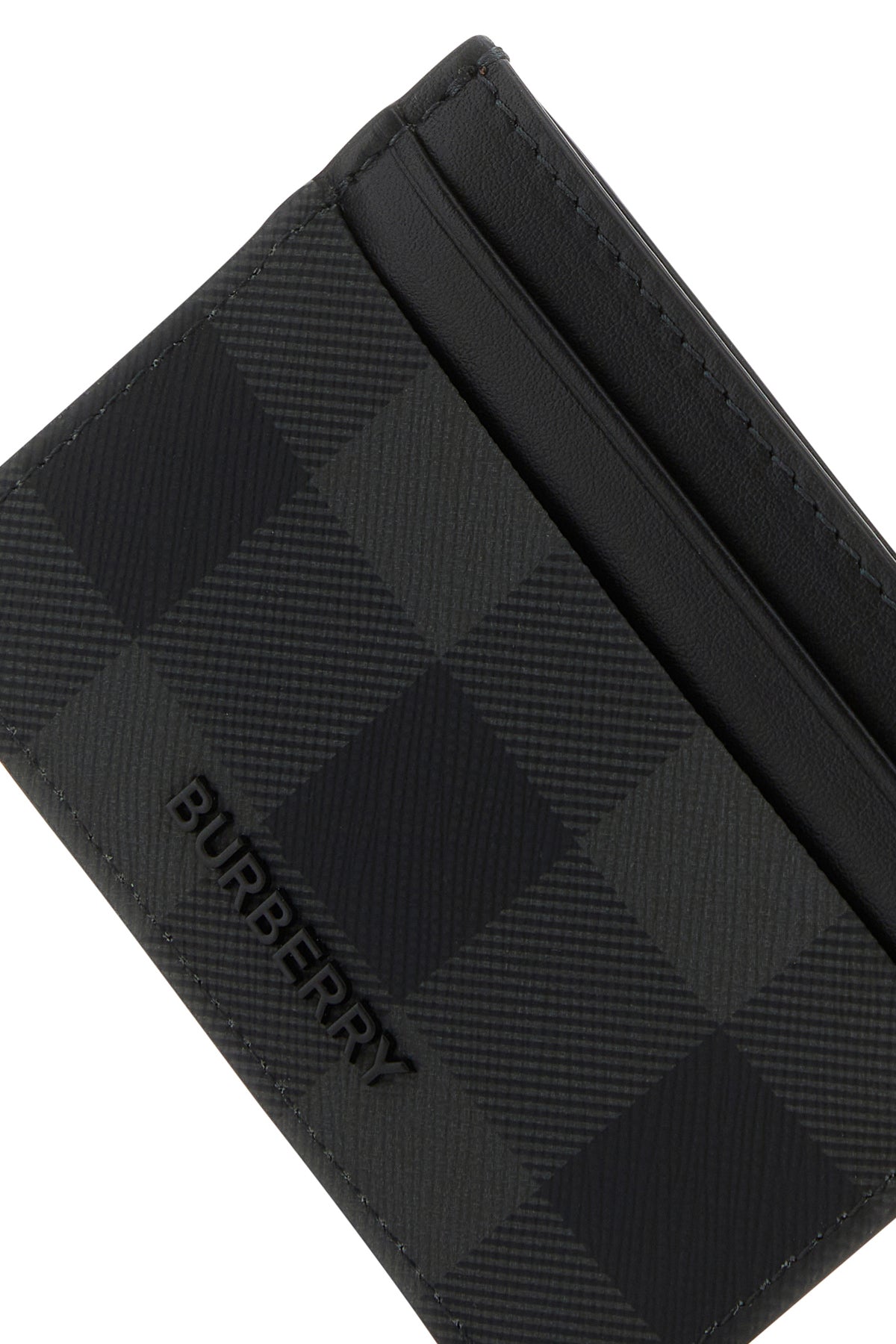 Portacarte realizzato in tela rivestita caratterizzata da stampa Burberry Check su tutta la superficie arricchita da logo in lettere metalliche sulla parte frontale.
