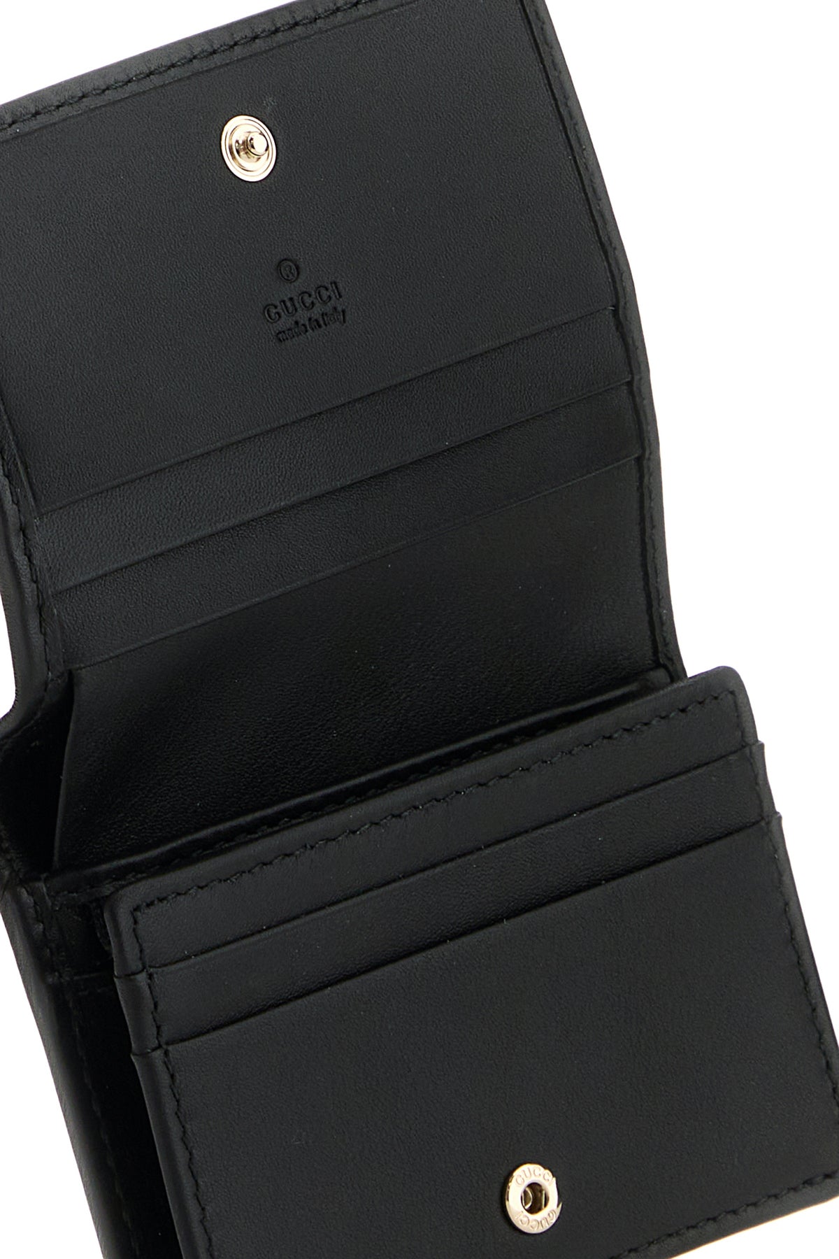 Portafoglio realizzato in tessuto GG Supreme rivestito e pelle liscia arricchito da dettaglio Morsetto in metallo sulla parte frontale.