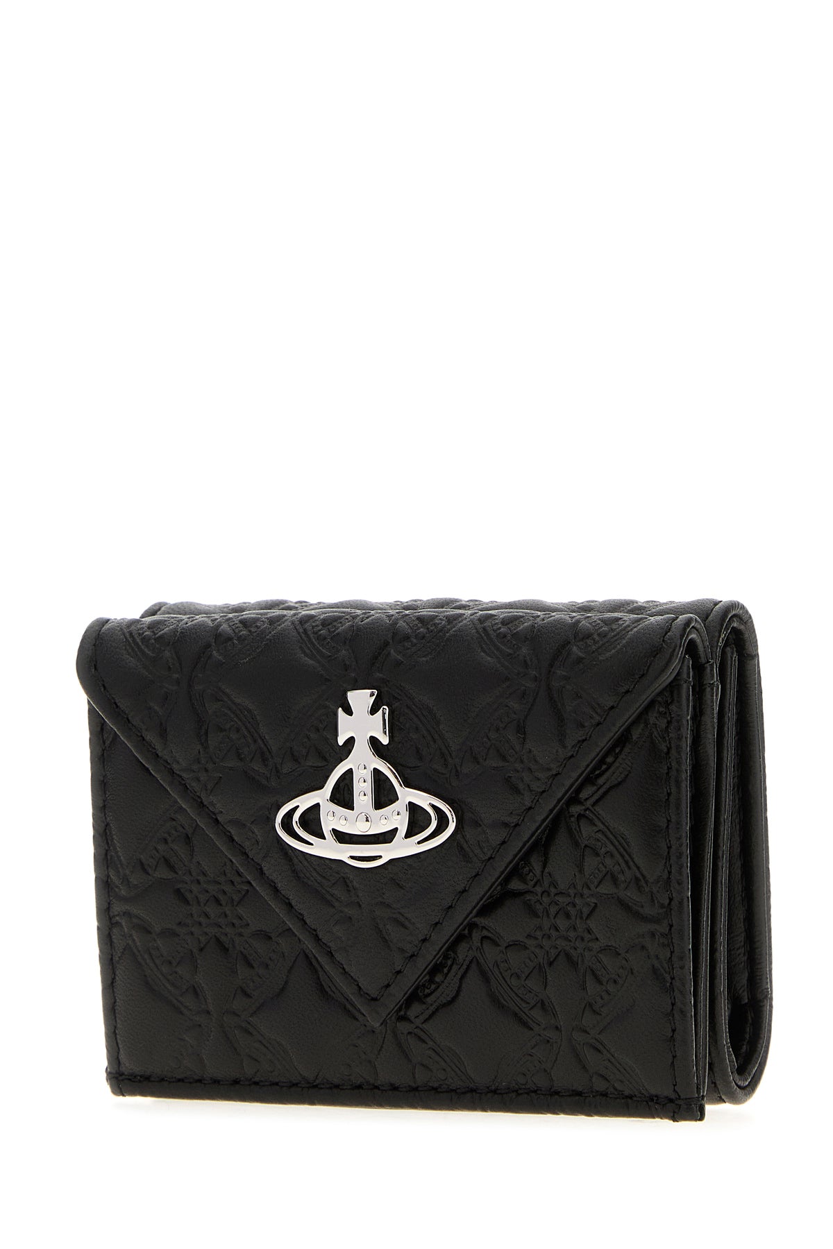 Portafoglio realizzato in pelle impressa arricchita da dettaglio metallico Orb sulla parte frontale.