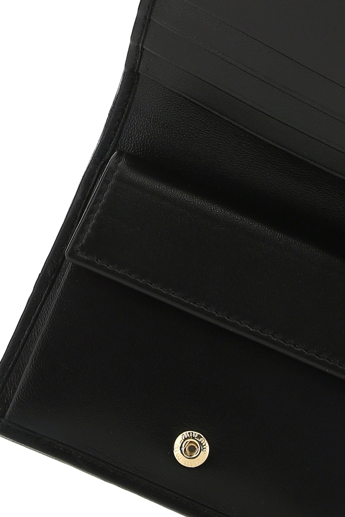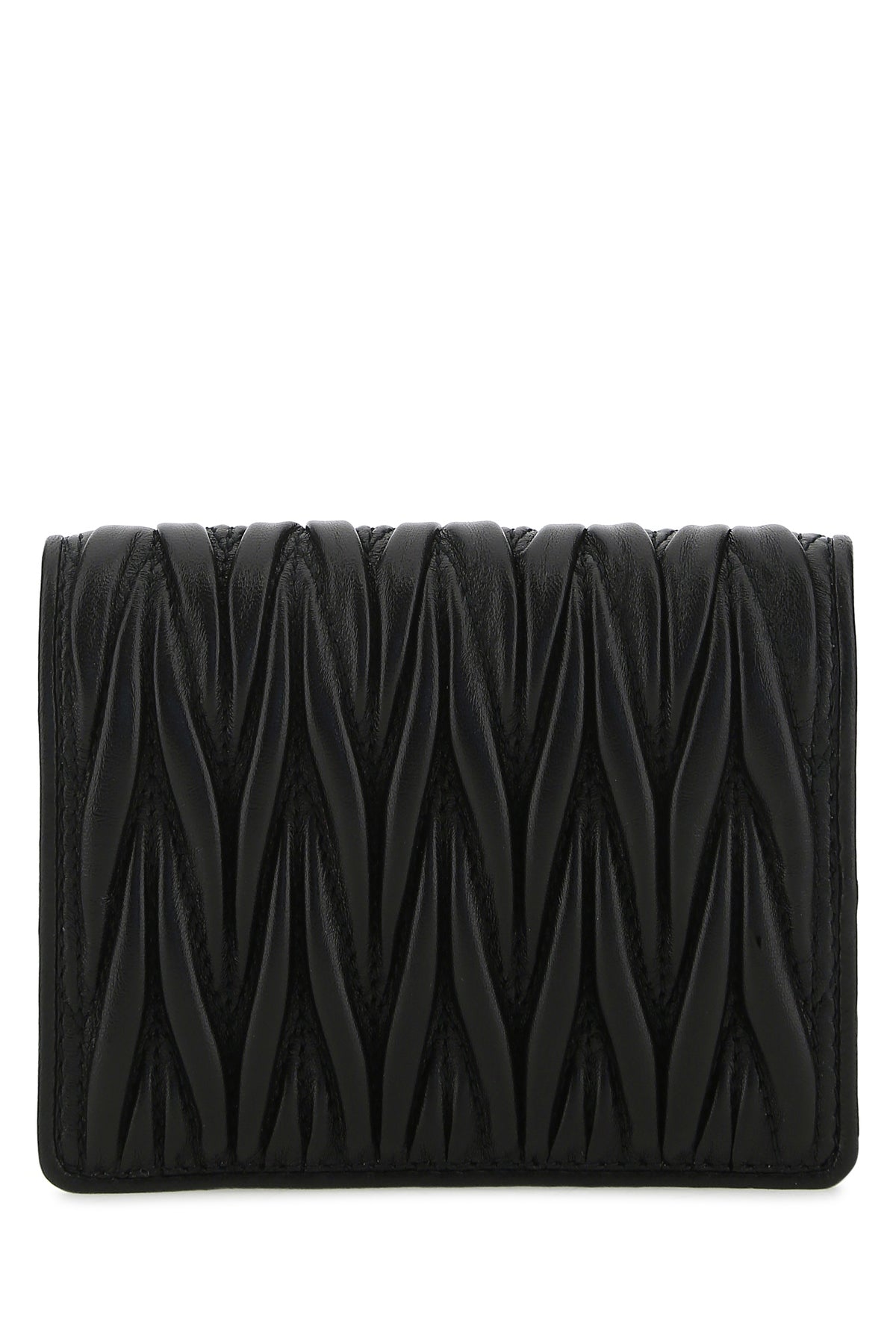 Portafoglio realizzato in pelle matelassé arricchita da logo in lettere metalliche sulla parte frontale.