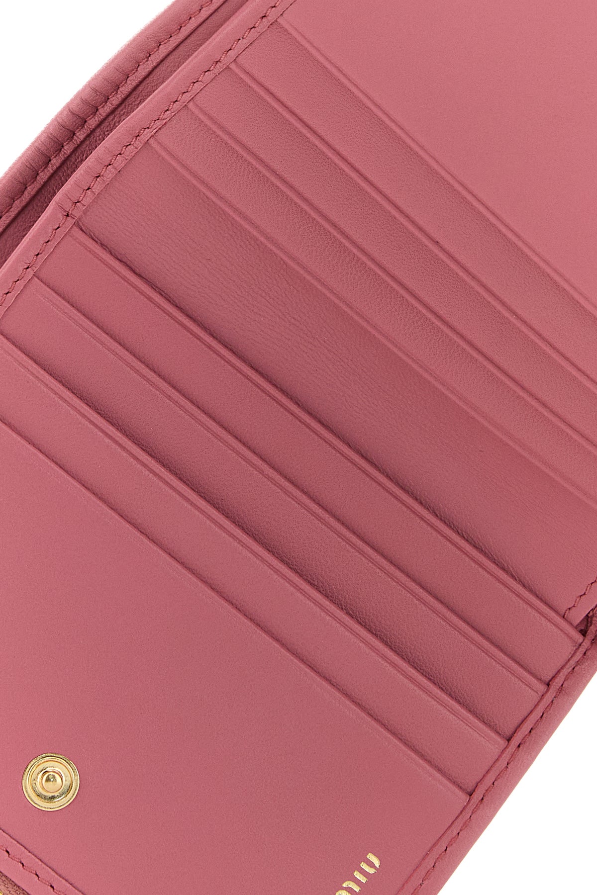 Portafoglio realizzato in pelle matelassé arricchito da logo in lettere metalliche sulla parte frontale.
