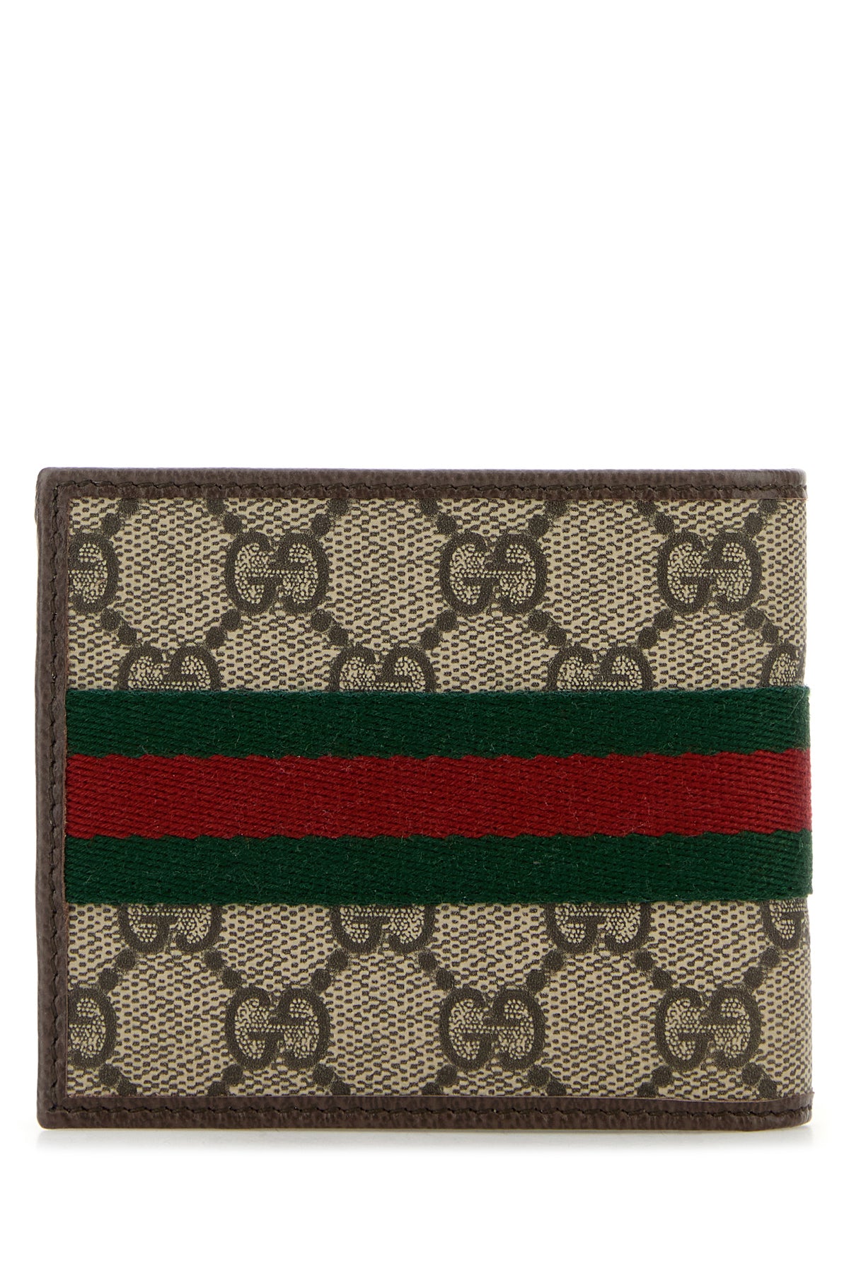 Portafoglio realizzato in tela rivestita caratterizzato da stampa GG su tutta la superficie arricchito da dettaglio metallico GG e applicazione Web.