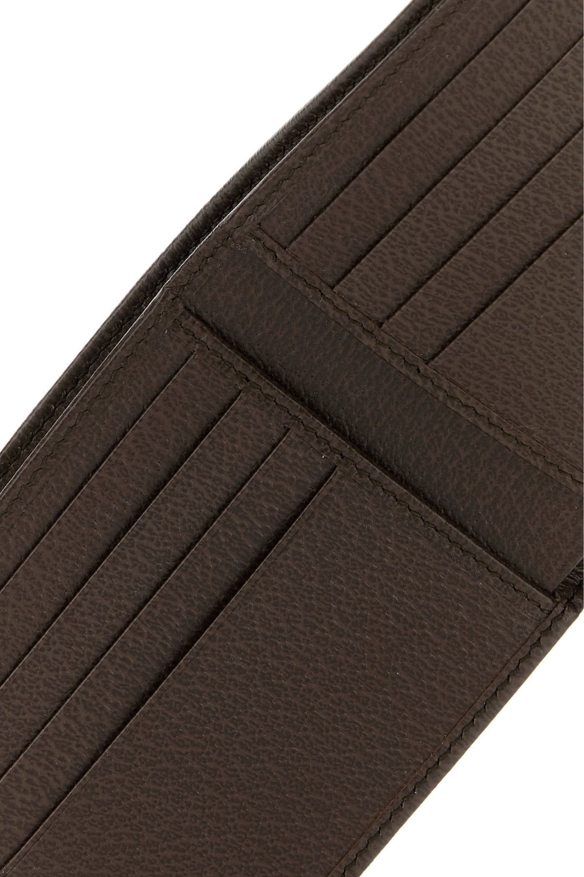 - Interno con due scomparti per banconote, due tasche a fessura e otto spazi per carte di credito