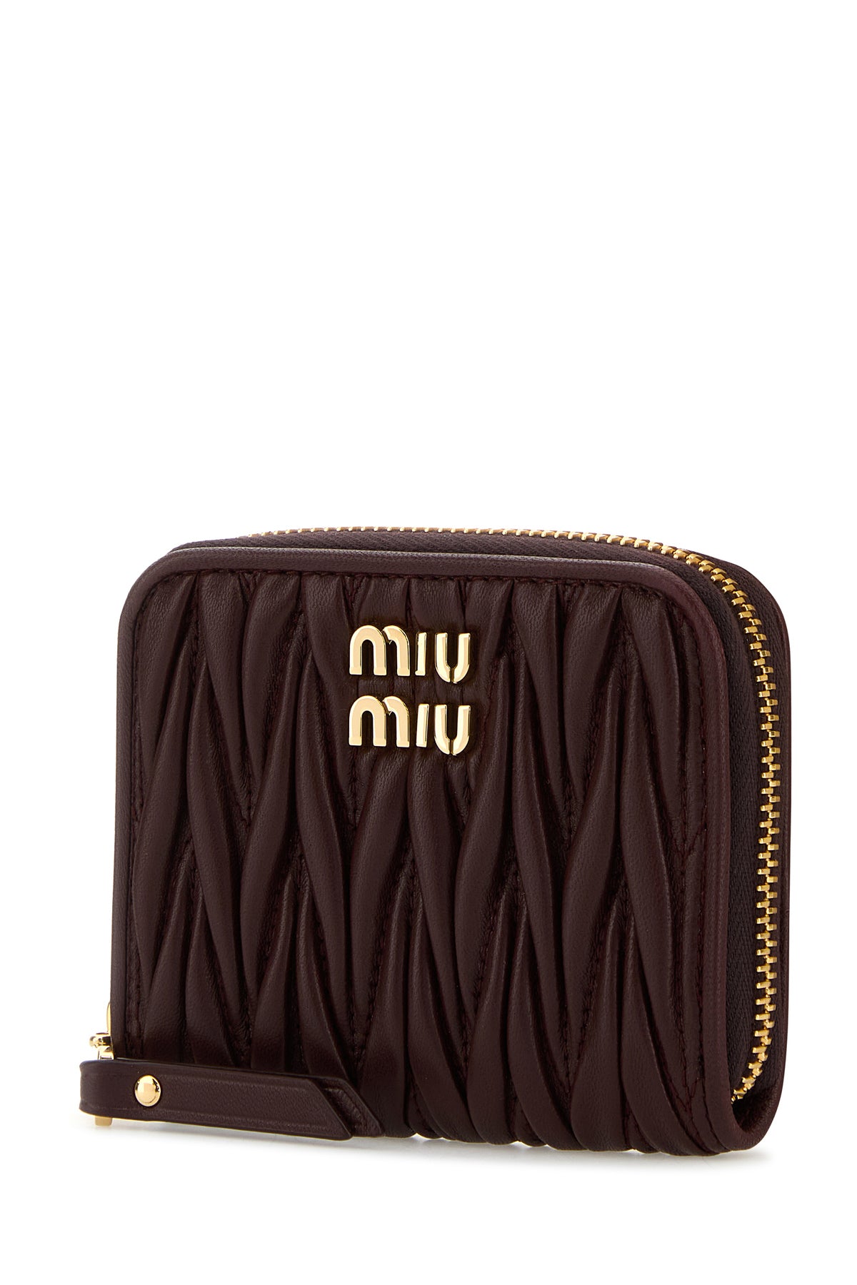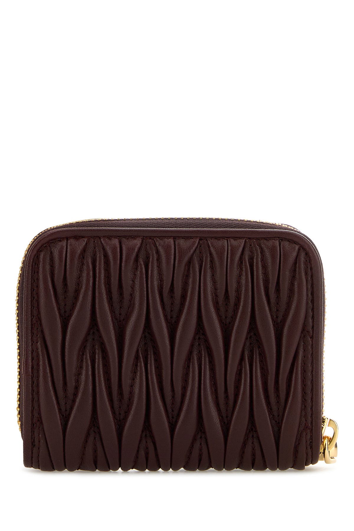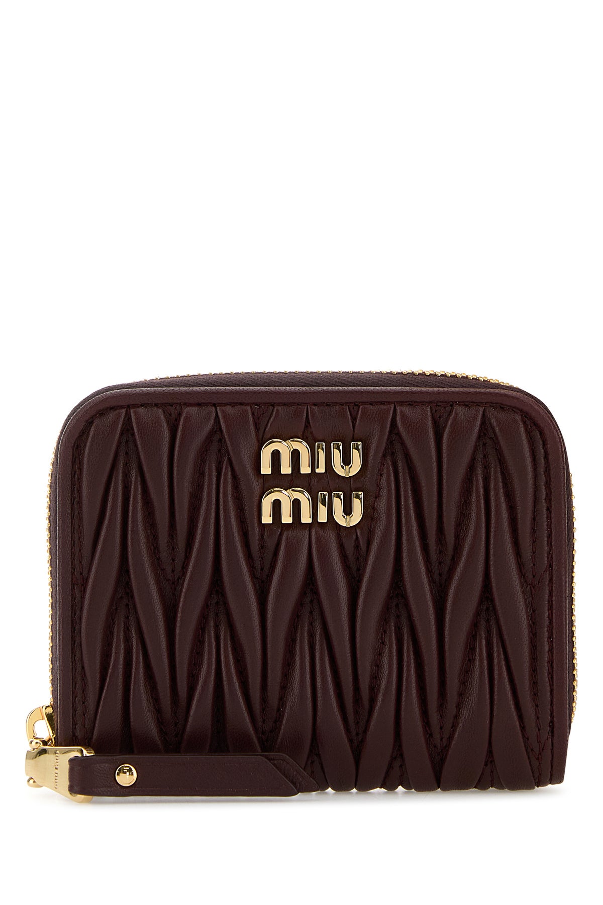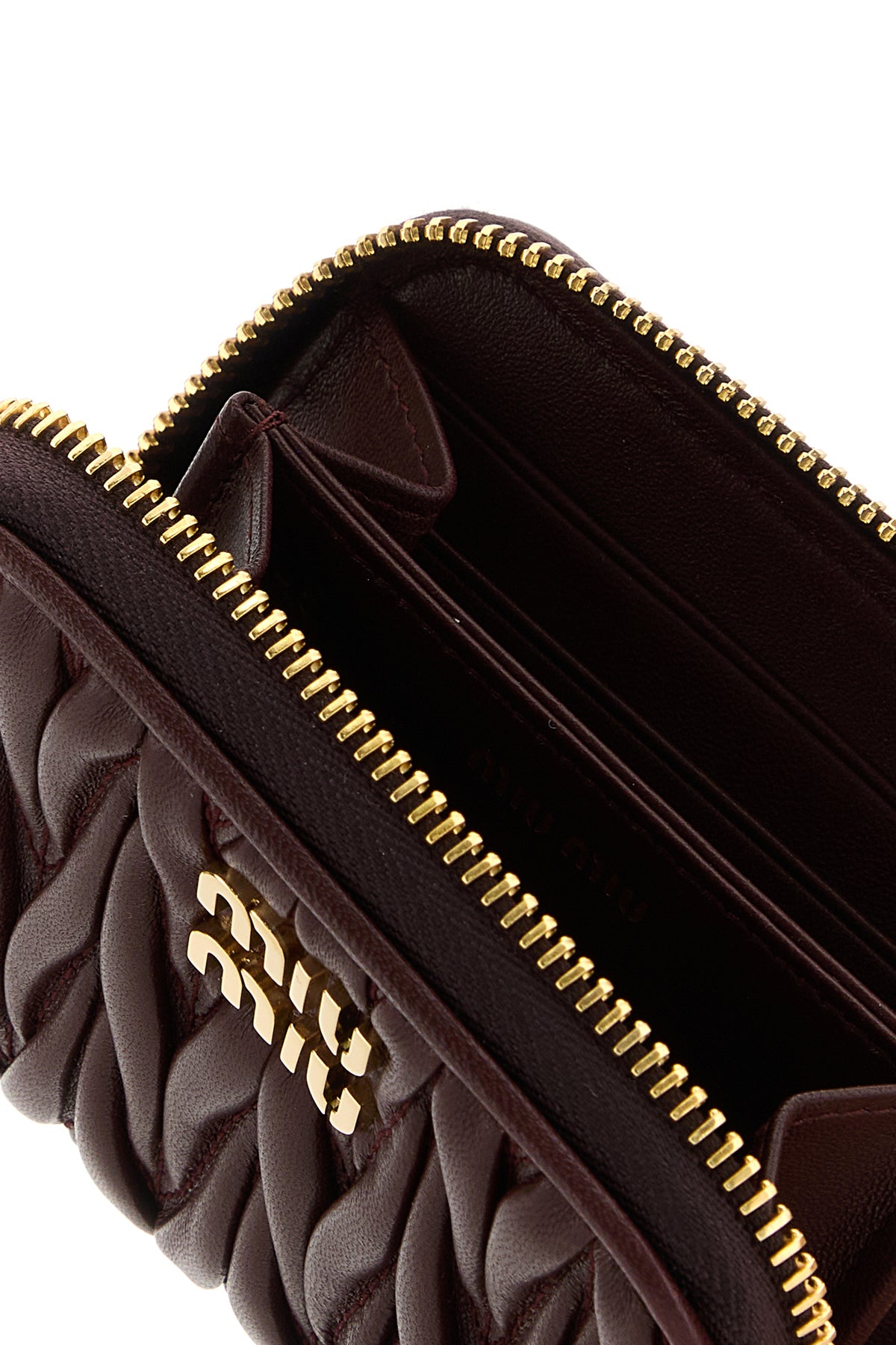 Portamonete realizzato in pelle matelassé arricchito da logo in lettere metalliche sulla parte frontale.