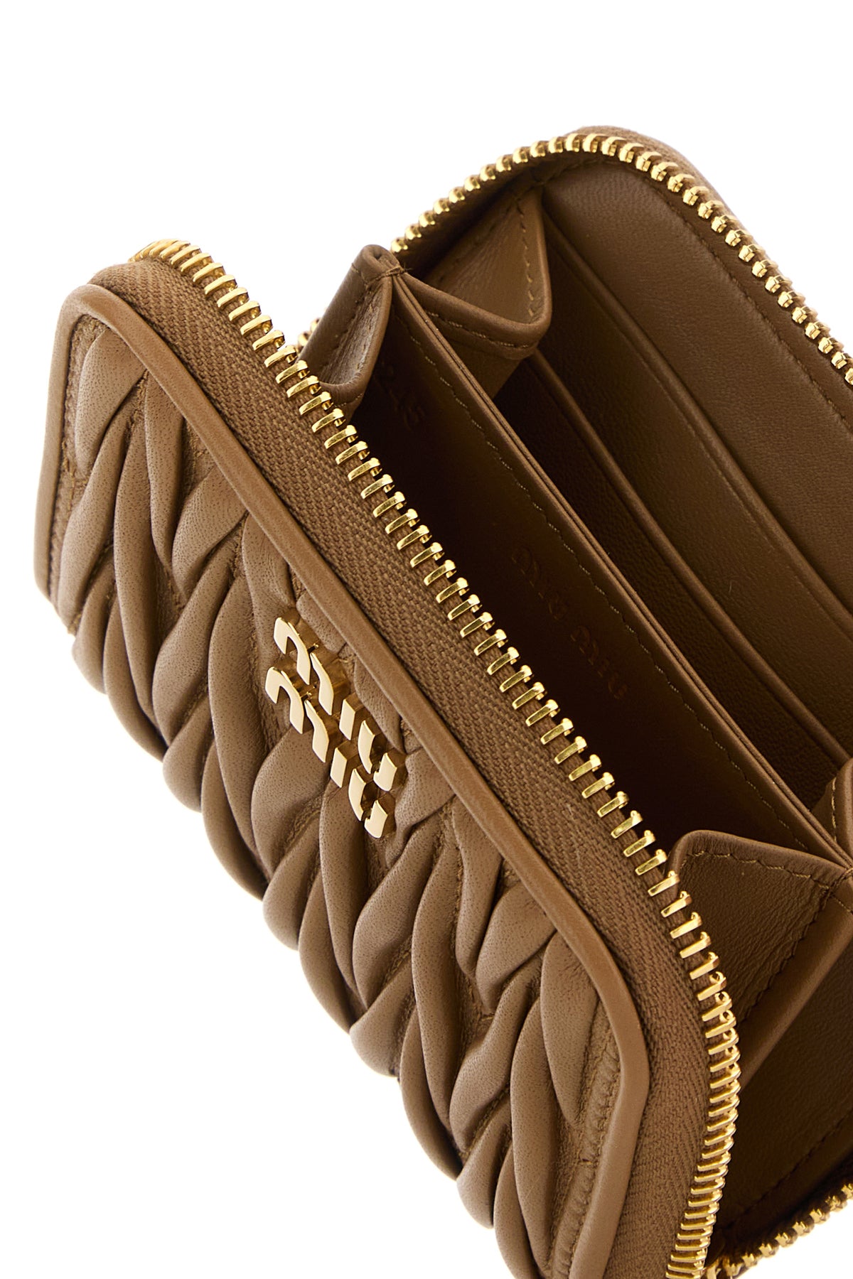 Portamonete realizzato in pelle matelassé arricchito da logo in lettere metalliche sulla parte frontale.