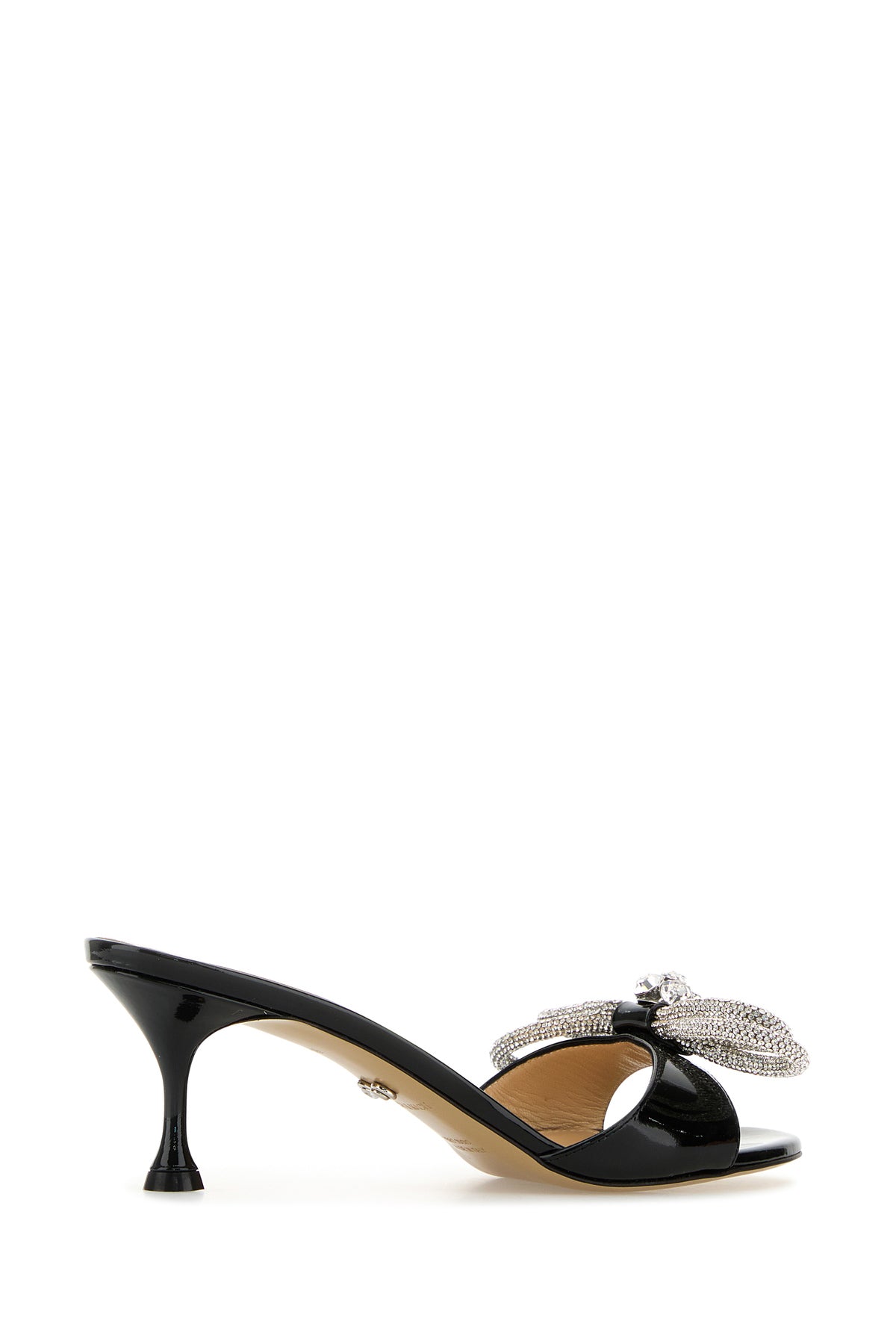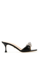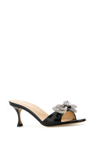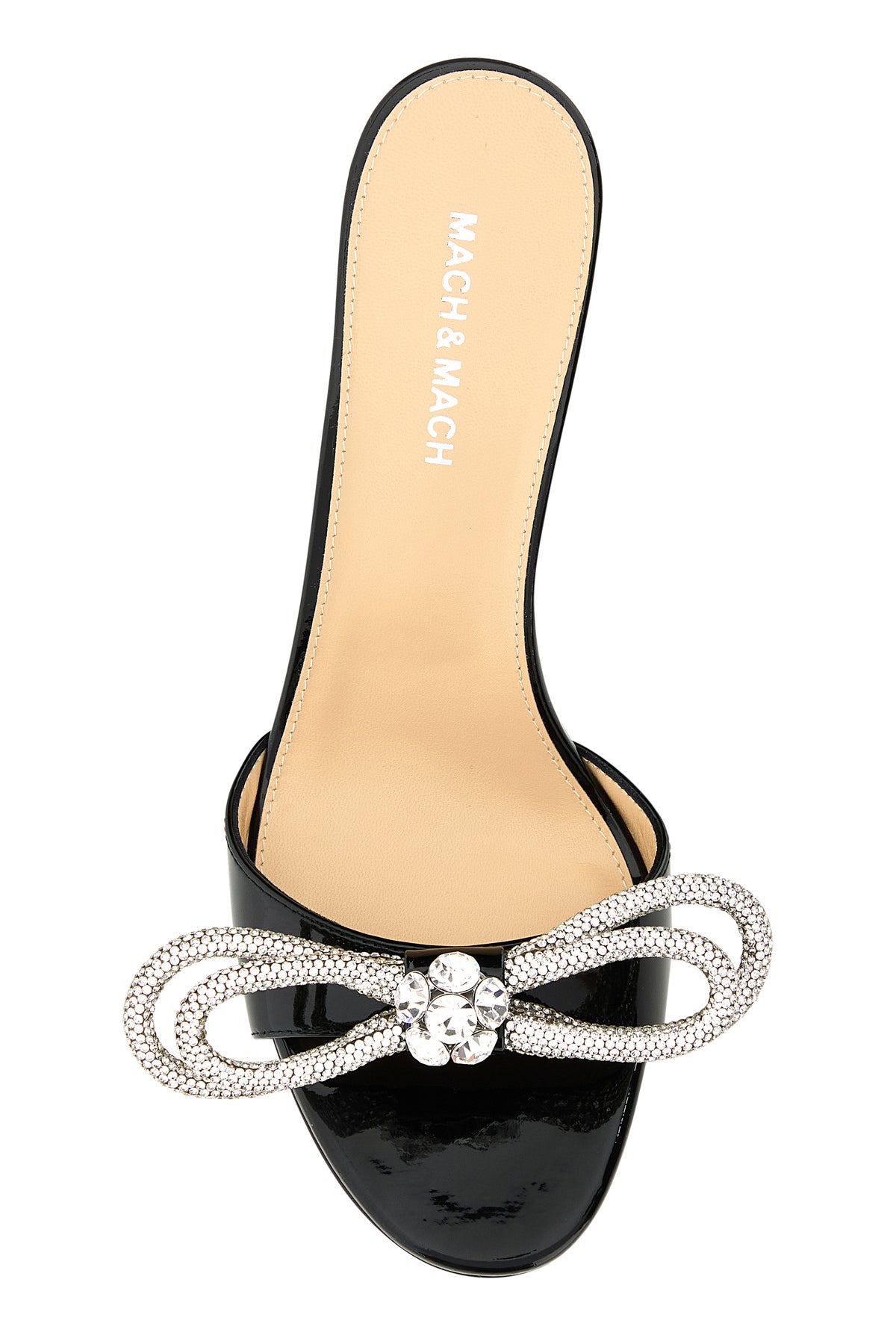 Sabot realizzati in pelle verniciata arricchiti da fiocco gioiello in cristalli sulla parte frontale.