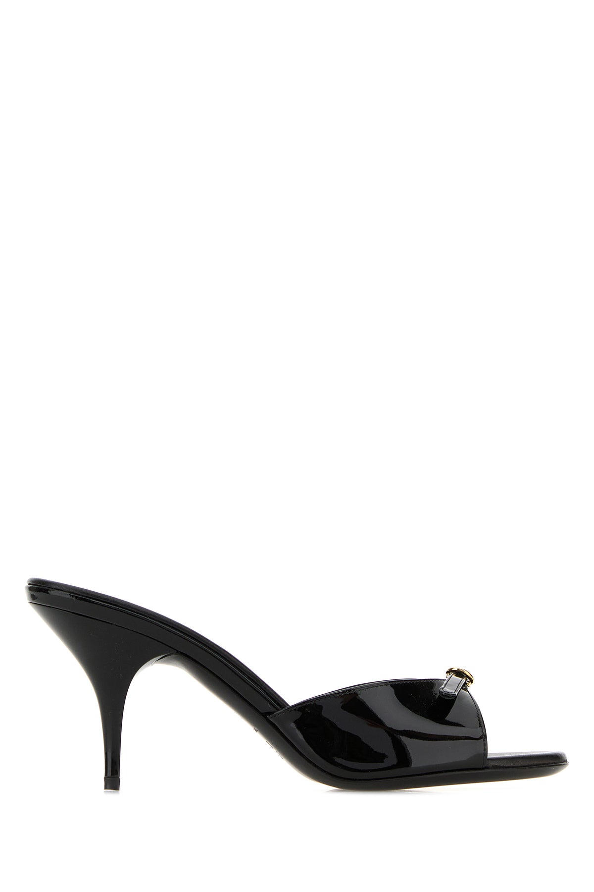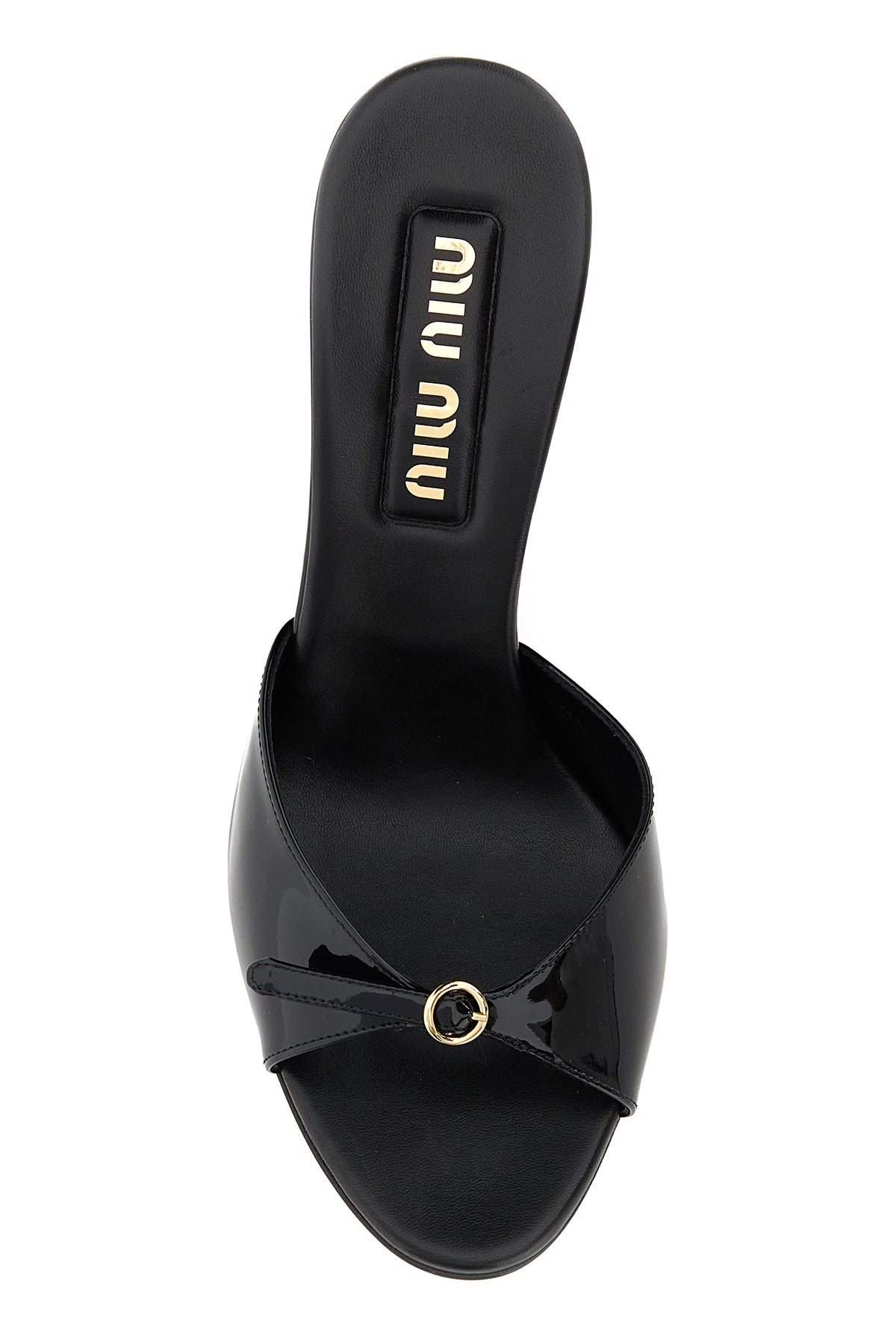 Sabot realizzati in pelle verniciata caratterizzati da cinturino sul collo del piede.