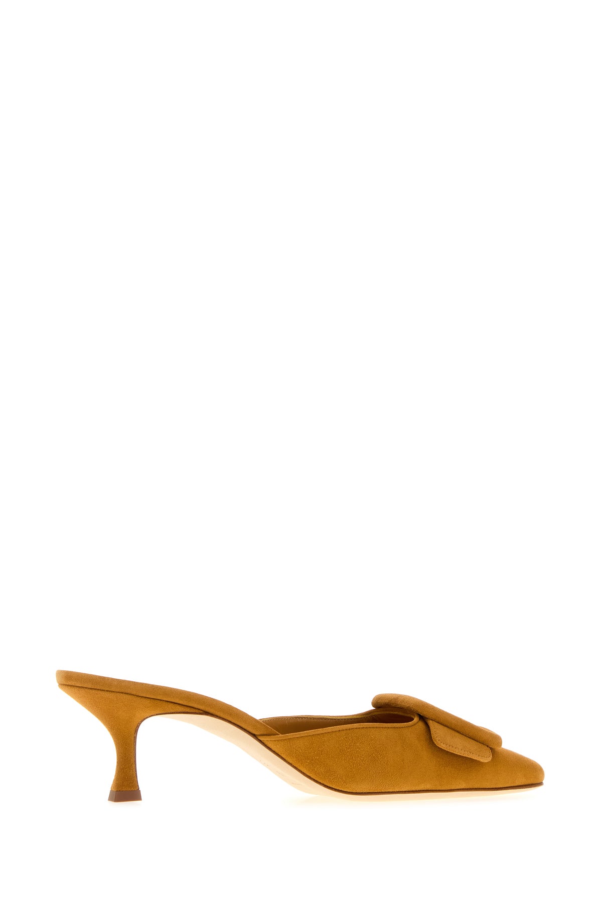 Sabot realizzati in pelle scamosciata arricchiti da fibbia decorativa in pelle scamosciata tonale sulla parte frontale.