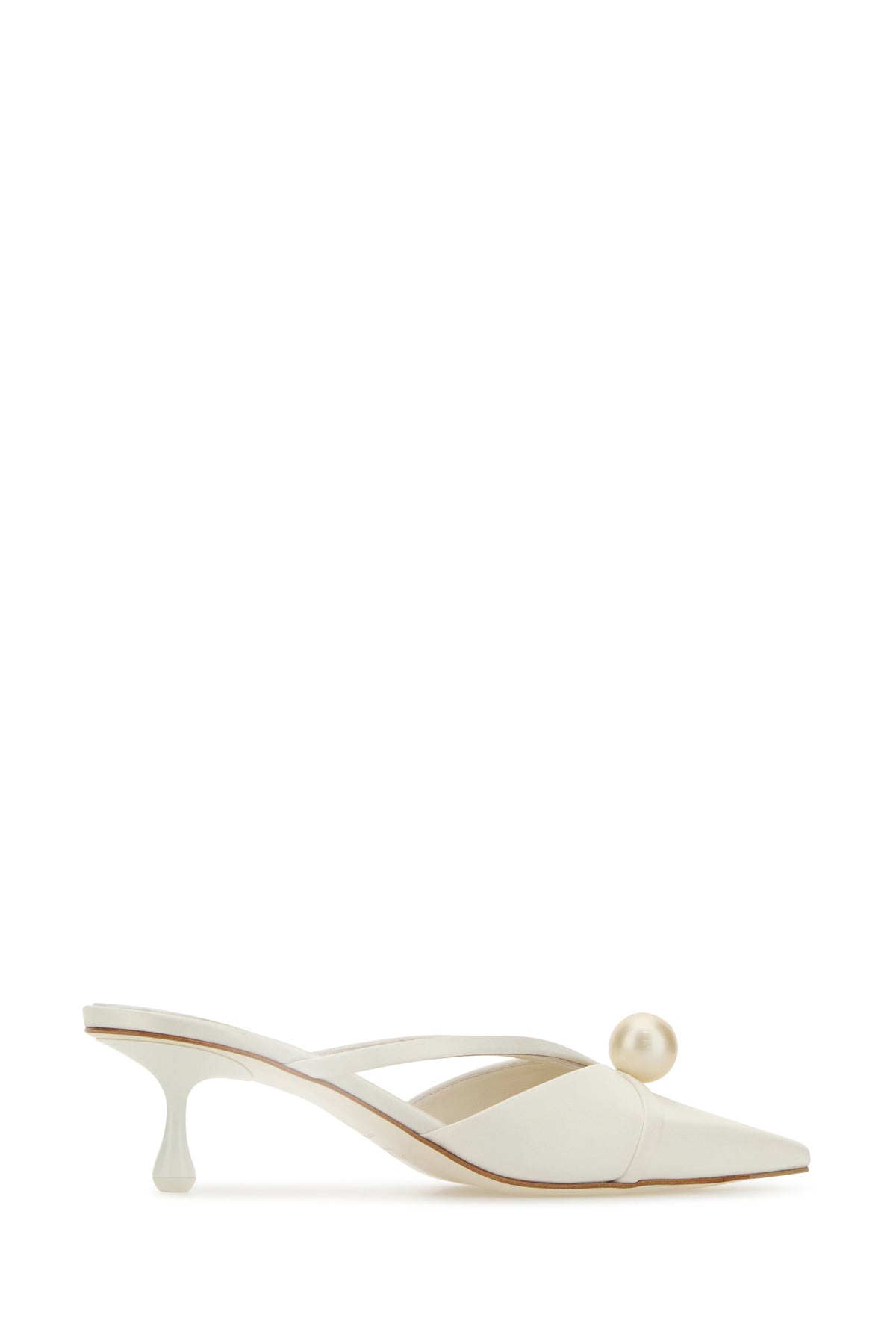 Sabot realizzati in raso arricchiti da applicazione logata sul collo del piede.