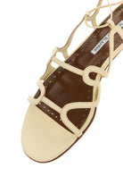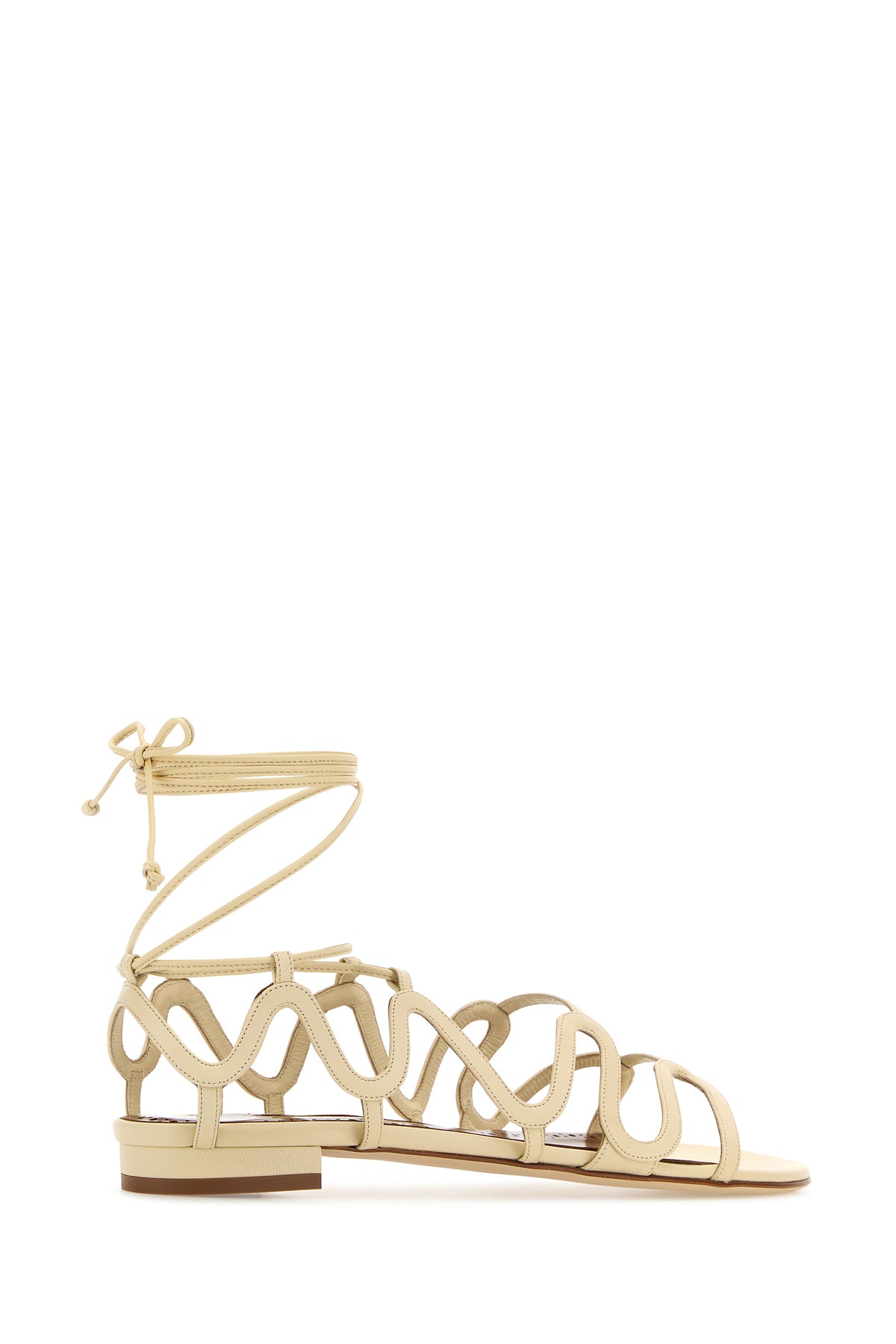 Sandali realizzati in pelle caratterizzati da chiusura mediante lacci da annodare alla caviglia.