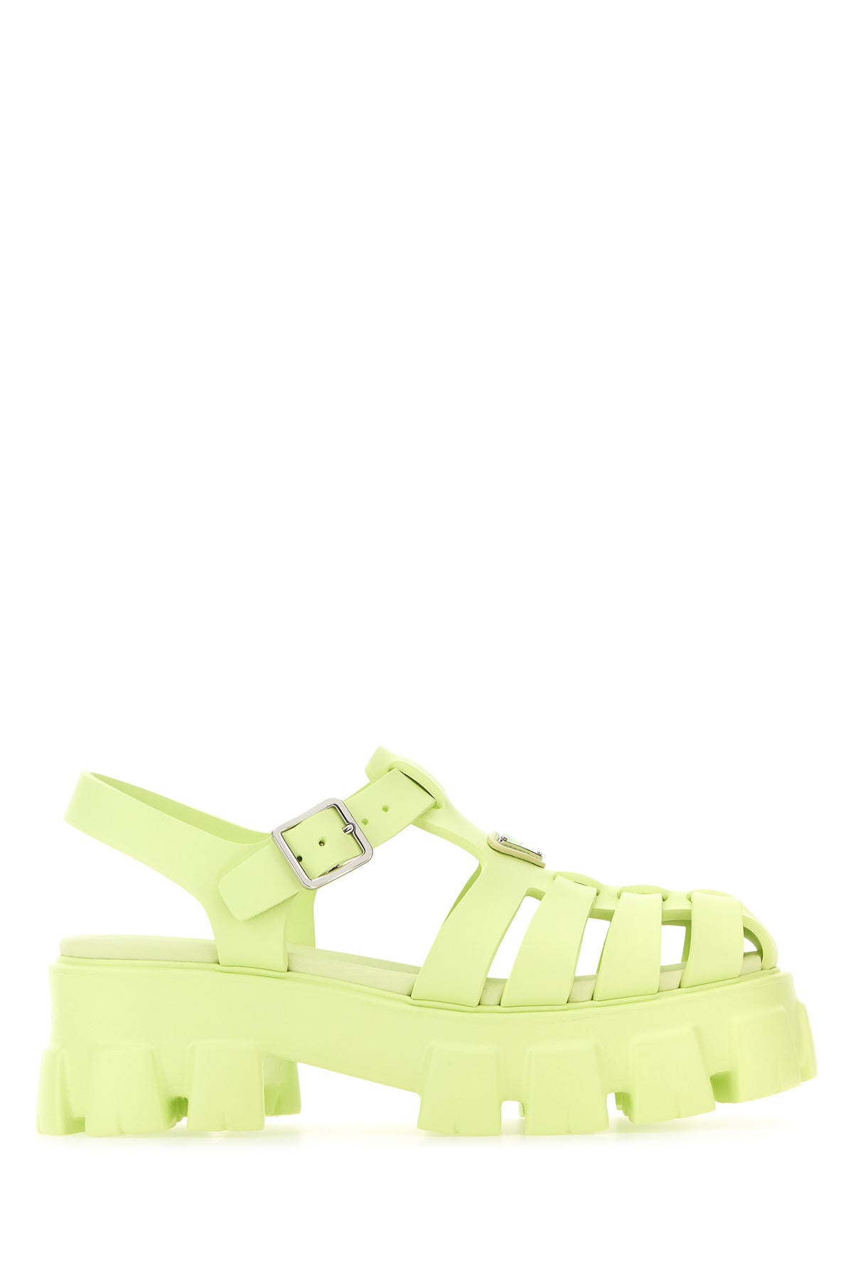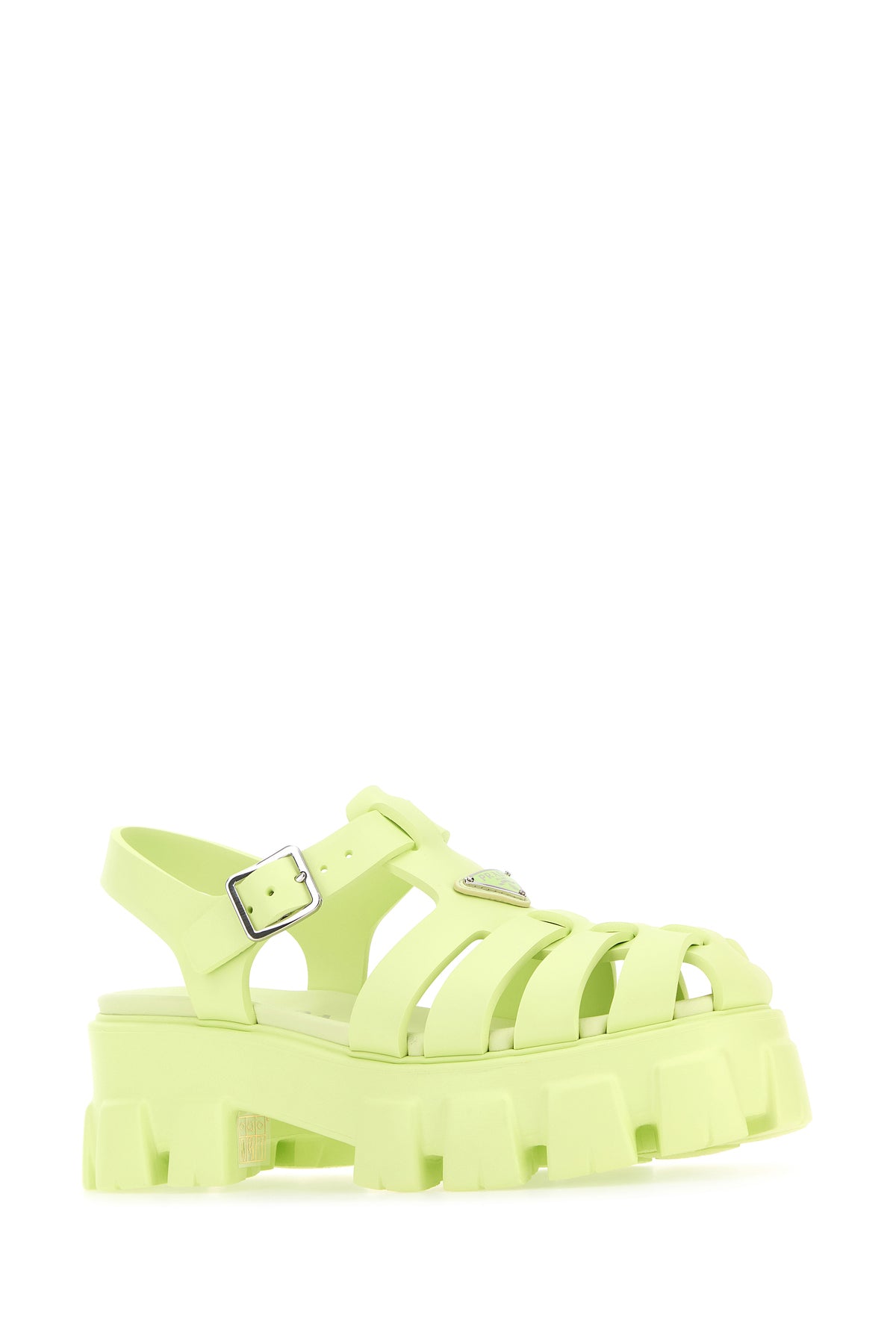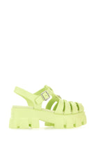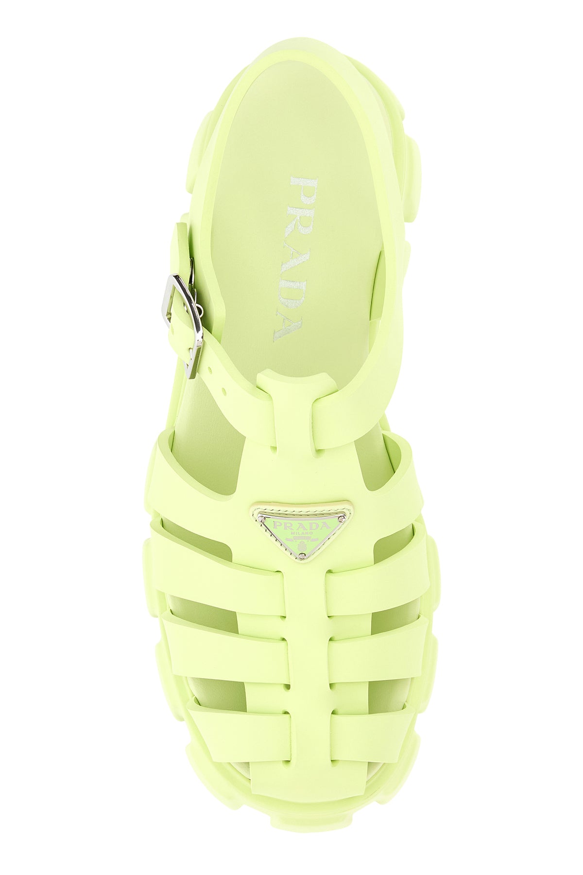 Sandali realizzati in gomma caratterizzati da logo impresso sul retro arricchiti da iconico triangolo logato in metallo sul collo del piede.